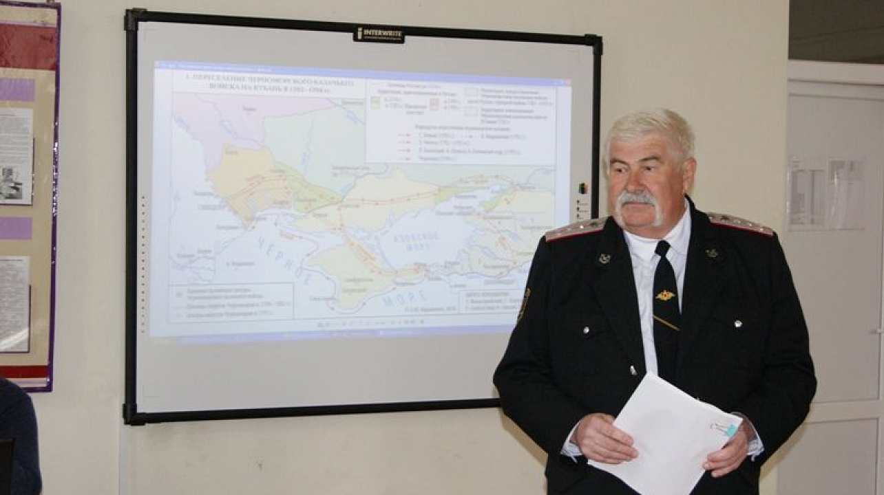 Подъесаул Виктор Турченко прочитал ребятам лекции по истории казачества, а атаман, войсковой старшина Василий Полухин о деятельности Кубанского казачьего войска на сегодняшний день.