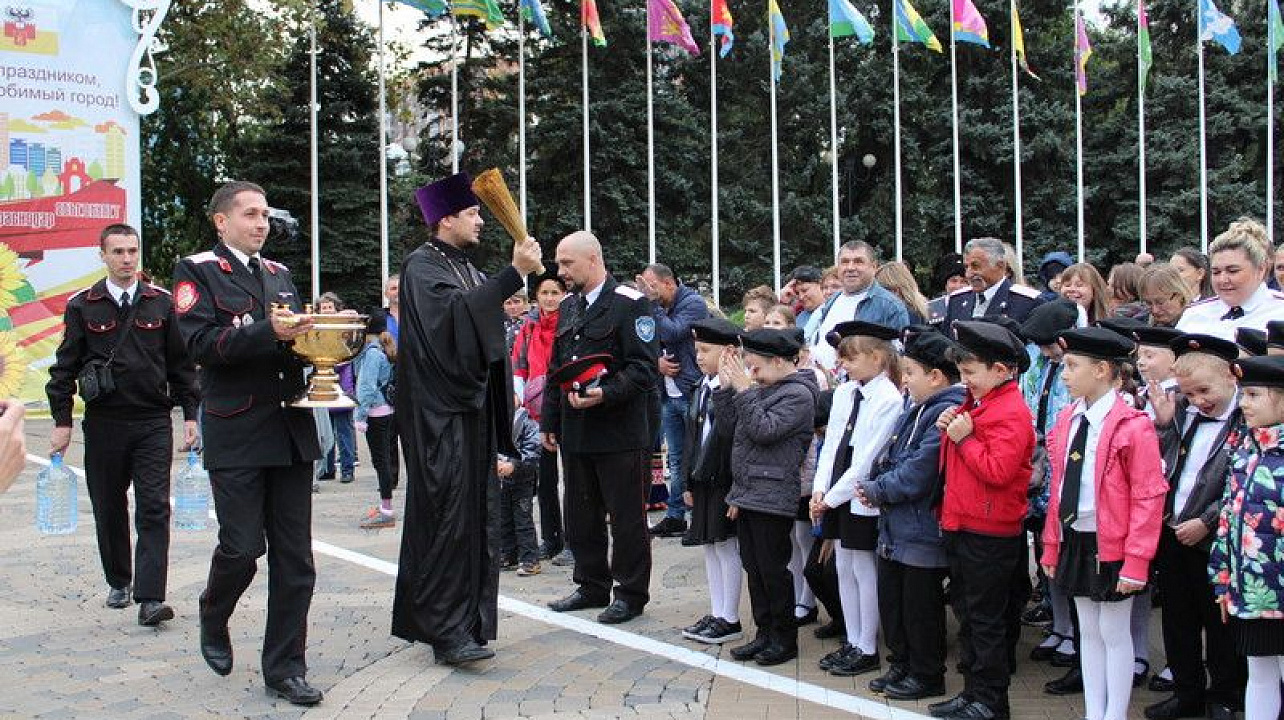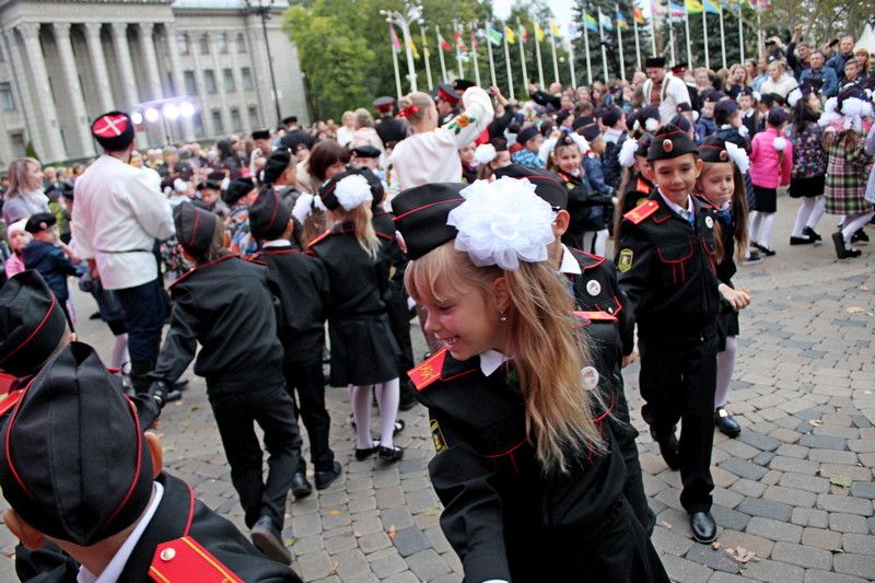 В это же время прошло торжественное посвящение в казачата первых классов казачьей направленности города Краснодара. Всего принимало участие в посвящении 11 школ и более 300 юных казачат в сопровождении казаков-наставников Екатеринодарского районного казачьего общества, которые непрерывно осуществляют военно-патриотическое воспитание школьников города Краснодара. На казачьей площади прозвучало торжественное обещание, которое хором произнесли юные казаки и казачки, которые станут приемниками казачьей культуры и вековой славно истории Кубанских казаков. После торжественной клятвы, казачата прошли парадом по площади, а после приняли участие в праздничных плясках и конкурсах вместе с родителями, казаками-наставниками, жителями и гостями казачьей столицы.