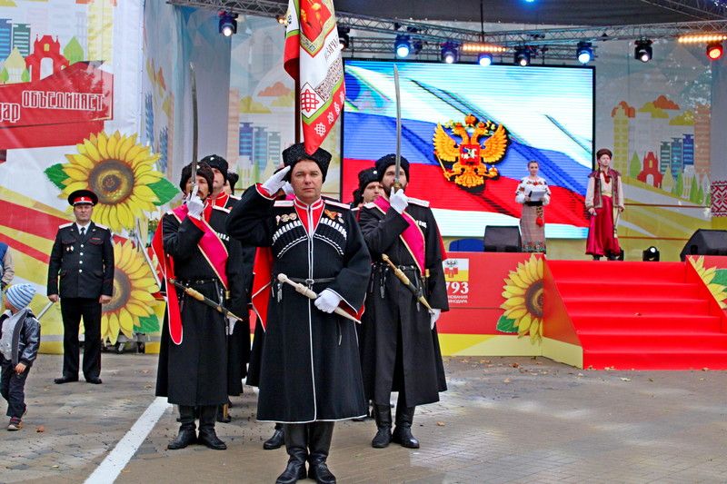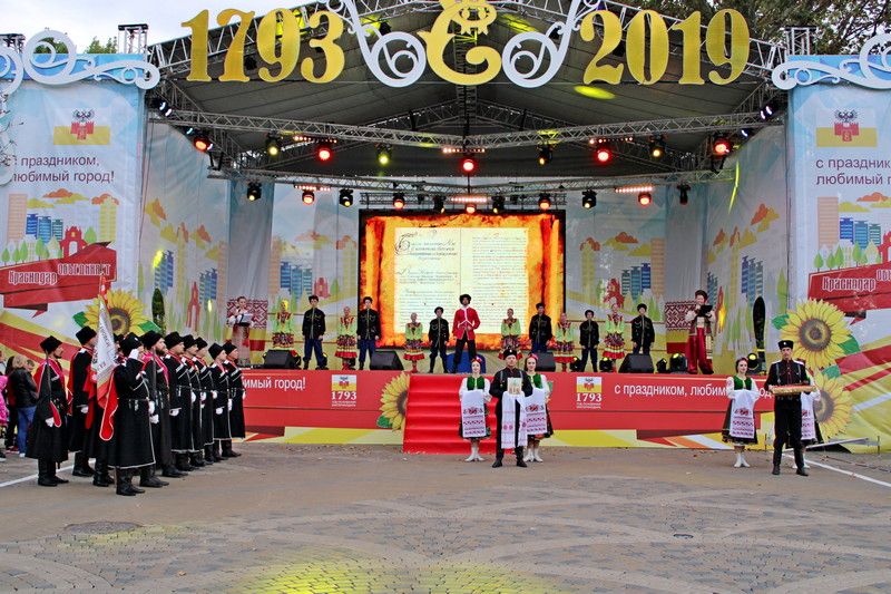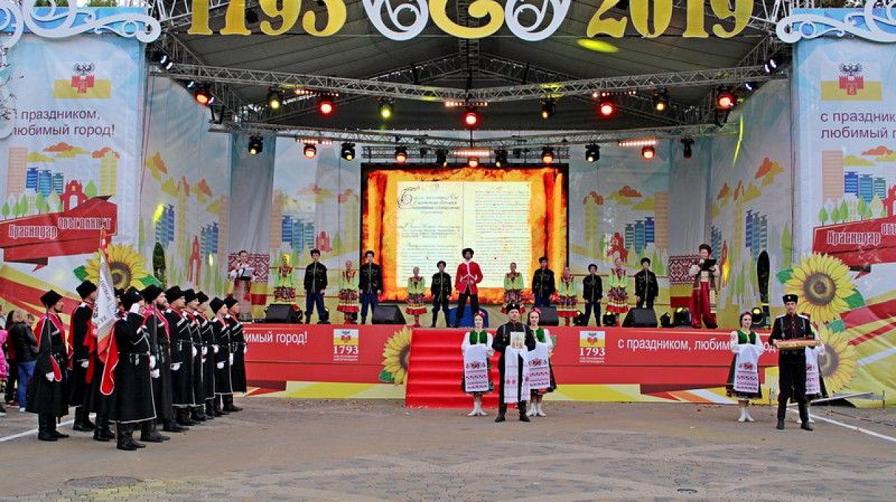 Театрализованное представление «Екатеринодар — душа Кубани» сразу по завершению церемонии посвящения в юные казачата открыла композиция с участием народного хора «Елизаветинцы», коллектива народного творчества России, ансамбля «Станица» и ансамбля народного танца «Корсунь».