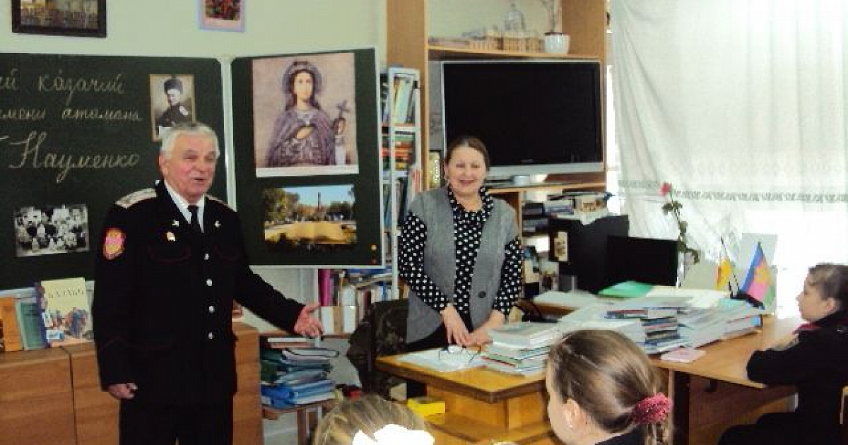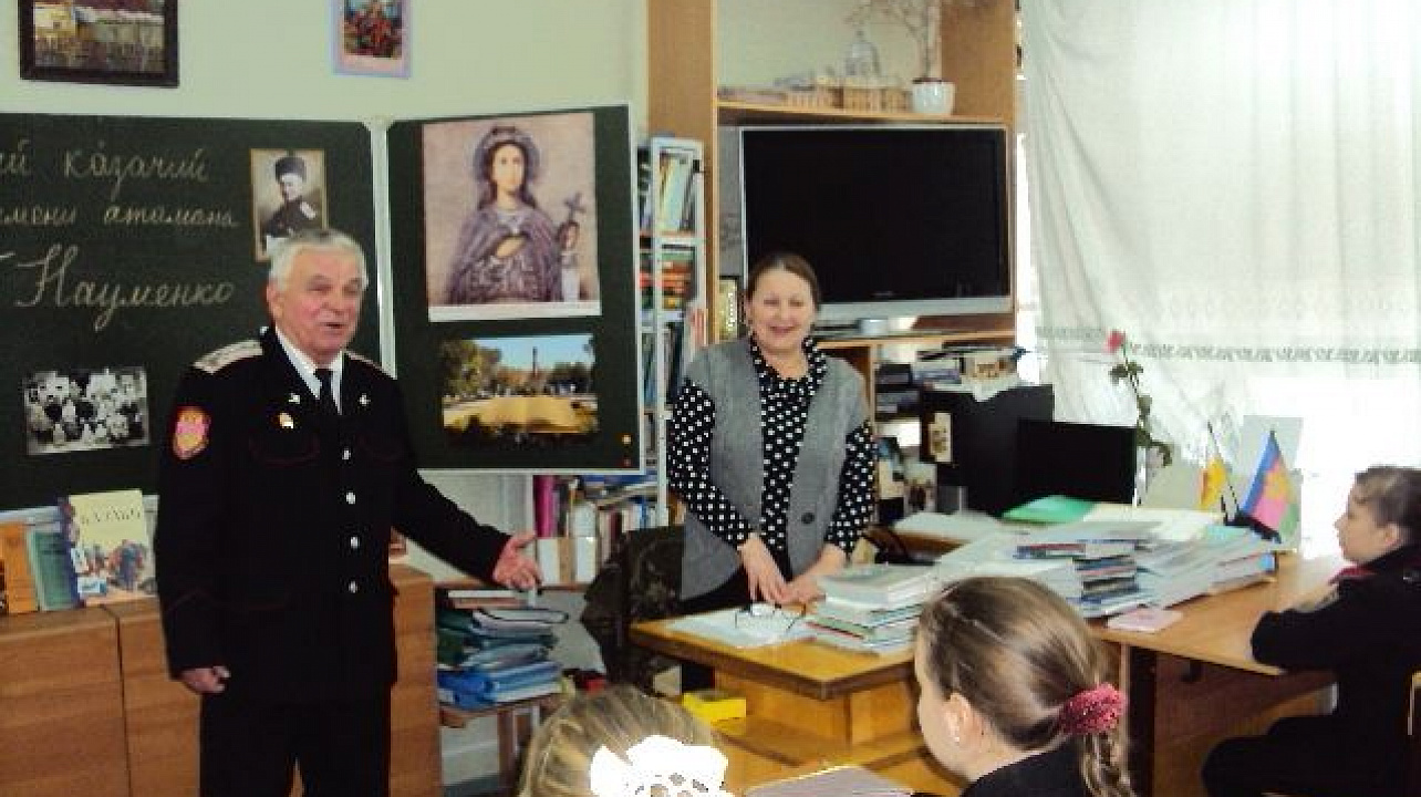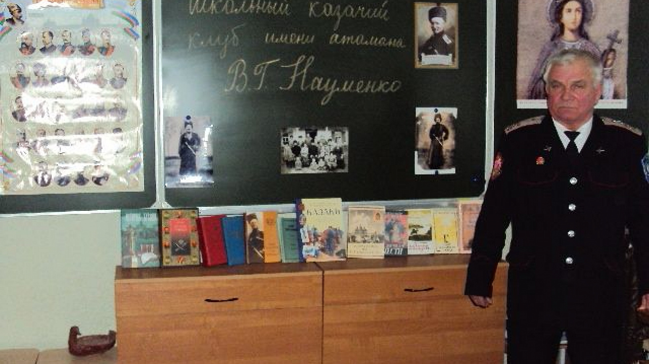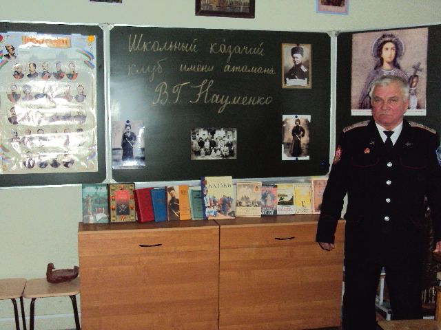 Во время урока мужества старшие казачата торжественно передали эстафету своим младшим товарищам по клубу, рассказав об атамане Вячеславе Науменко, который в неспокойное для Родины время в 1920 году вместе с Фёдором Щербиной вывез за рубеж и сохранил регалии Кубанского казачьего войска. Со временем, именно он и стал главным инициатором их возвращения в Россию.