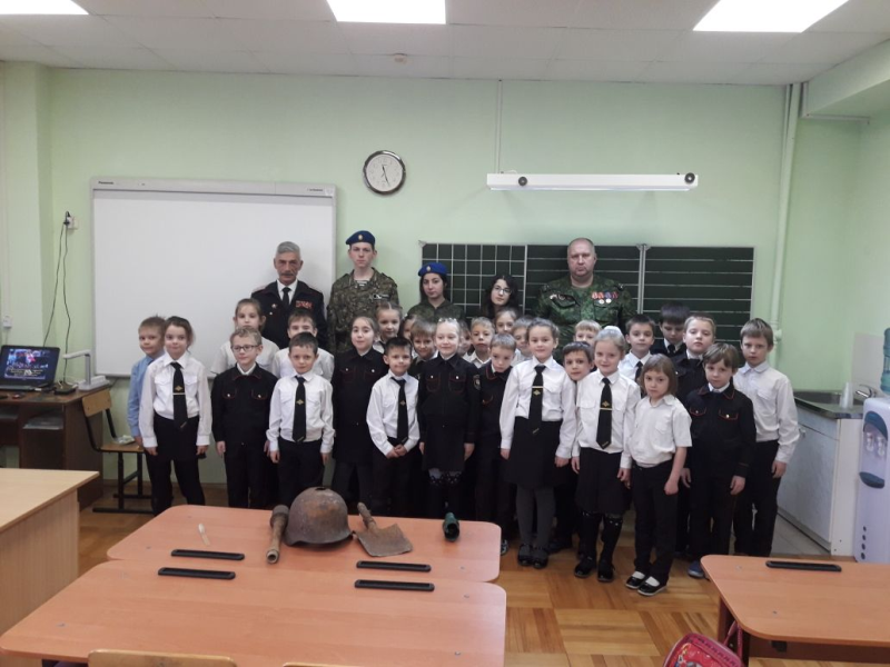 Урок провели: ветеран боевых действий в Афганистане и на Северном Кавказе, казак-наставник, председатель совета стариков ХКО «Юго-Западный» сотник Ермолаев Ю.М. и руководитель краеведческого поискового отряда «Патриоты Кубани» СШ №89 казак ХКО «Юго-Западный» Боровиков П.А. Ребята много узнали интересного о ВОВ, о том как был освобожден от немецко – фашистских захватчиков город Краснодар, а также о поисковом отряде «Патриоты Кубани».