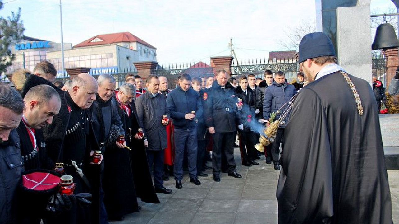 Более ста казаков города Краснодара во главе с атаманом собрались в храме Всех Святых, чтобы принять участие в панихиде, которую отслужил настоятель храма архимандрит Трифон (Плотников). После молебна об упокоении церемония, посвященная Дню памяти казаков — жертв массовых репрессий, передвинулась к новому мемориальному комплексу «Расстрельный угол». В ней приняли участие губернатор Краснодарского края Вениамин Кондратьев, глава Краснодара Евгений Первышов.