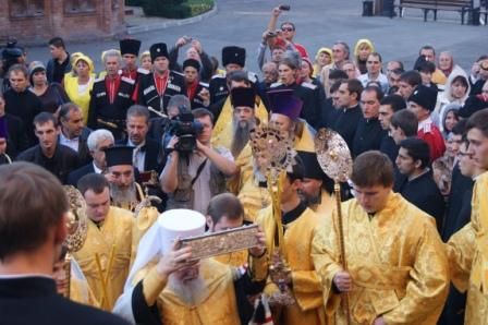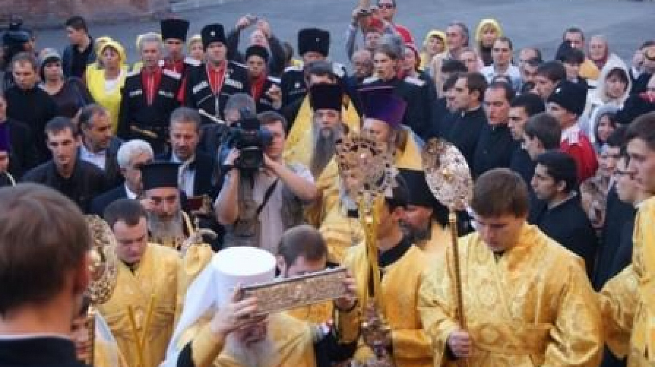 Казаки Екатеринодарского районного казачьего общества встретили ковчег со святыми мощами Спиридона Тримифунтского