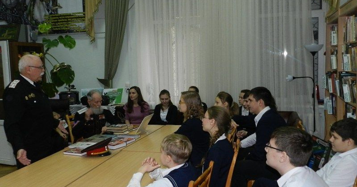 Девятнадцатого ноября в Центральной городской библиотеке им. Н. А. Некрасова представители Совета ветеранов-казаков Екатеринодарского районного казачьего общества встретились с учащимися 7 «А» школы № 39.