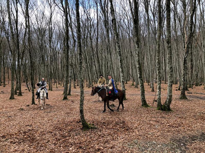 Традиционно казаки отправились в поход на конях. В общей сложности казаки вместе со своими вороными боевым товарищами преодолели около 40 километров, не смотря на проливной дождь и суровую горную погоду. Проходя мимо очередного мемориала, казаки чтили павших воинов молитвой и минутой молчания. Весь маршрут по местам боёв занял около суток.