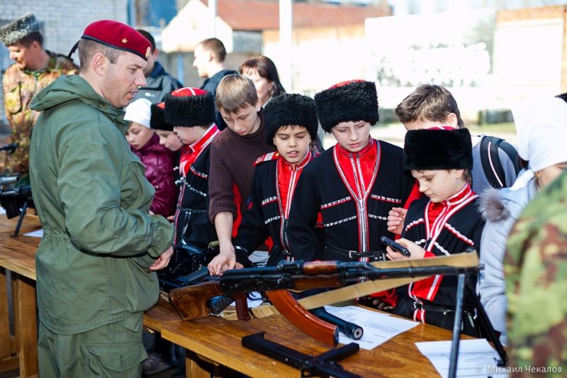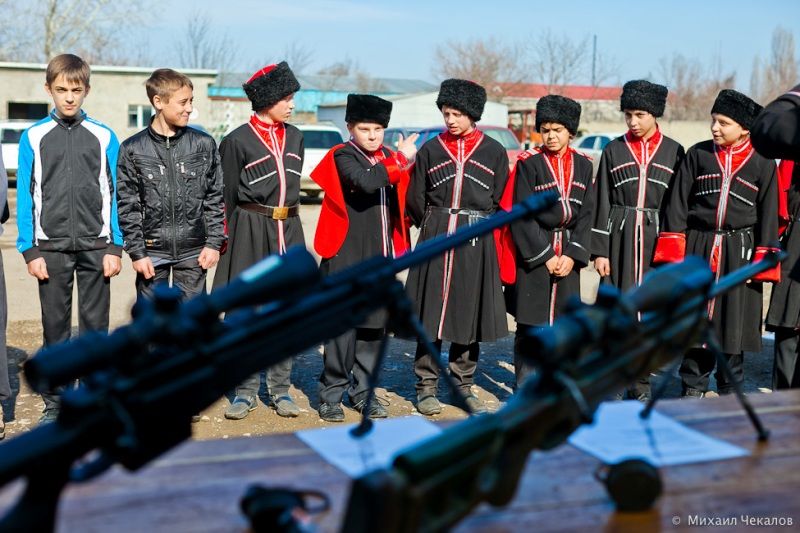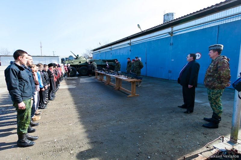 Учащиеся классов казачьей направленности средней общеобразовательной школы №60 посёлка «Пашковский» приехали в подразделение «Акула», где офицеры организовали для ребят выставку боевого оружия, имеющегося в арсенале. Казачата смогли посмотреть и даже подержать в руках винтовки, пистолеты, обмундирование, посмотреть боевую технику.