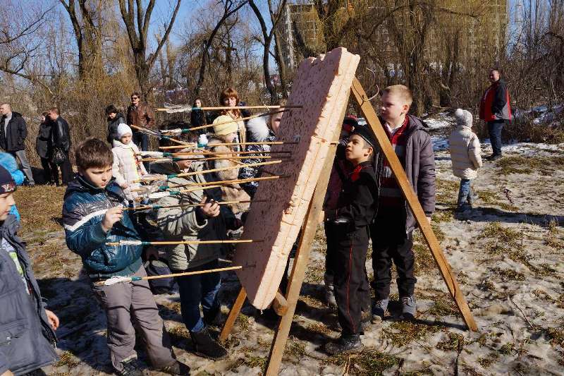 Родители показали свою меткость и силу в метании сулицы (казачьего копья) и поднятии шестнадцатикилограммовой гири.