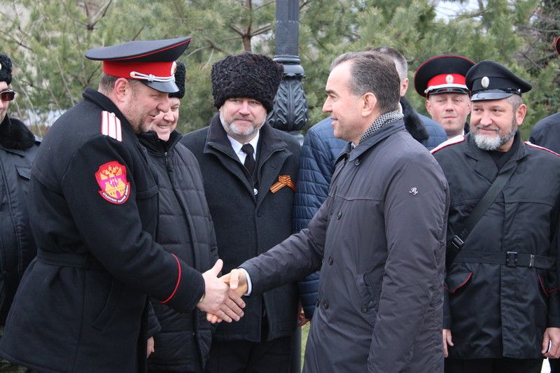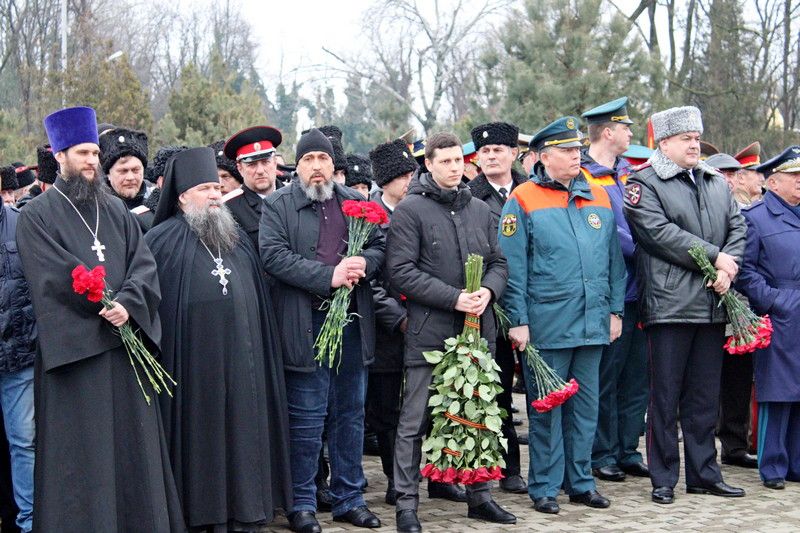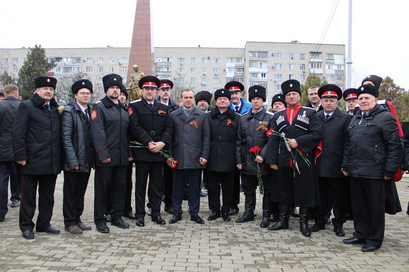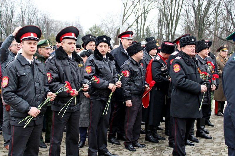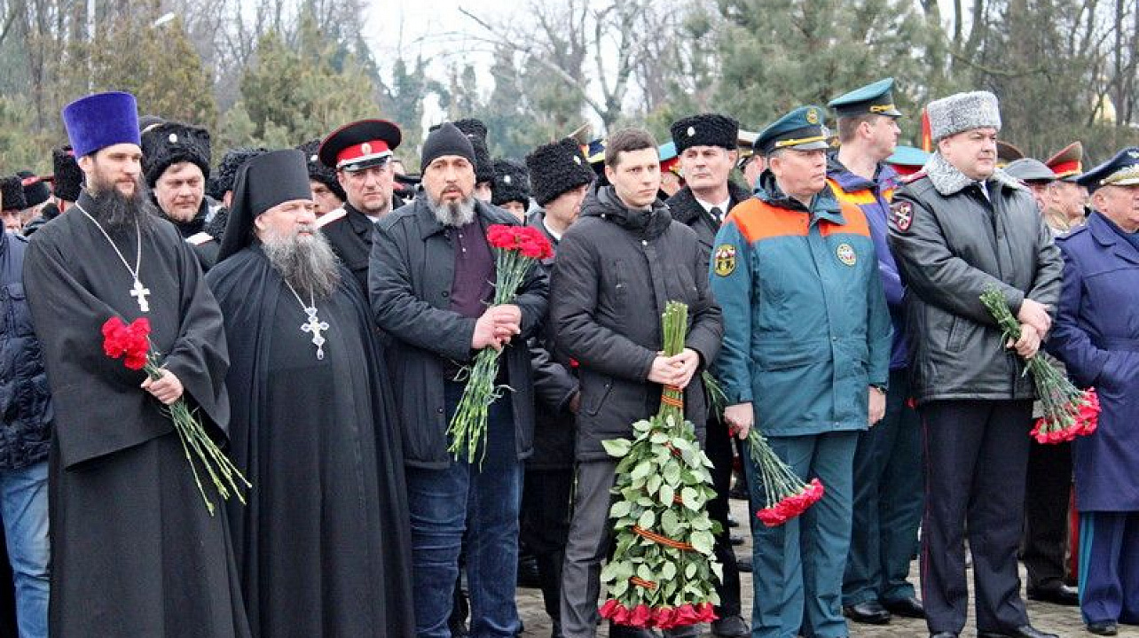 25 февраля 2020В День защитника Отечества состоялась церемония возложения цветов к монументу воинам, погибшим в боях с немецко-фашистскими захватчиками. В церемонии приняли участие губернатор Кубани Вениамин Кондратьев, председатель ЗСК Юрий Бурлачко, глава краевого центра Евгений Первышов, председатель гордумы Вера Галушко, атаман Екатеринодарского Отдела Виктор Светличный; атаман Екатеринодарского районного казачьего общества Алексей Горбенко, а также правление, казаки и казачья молодёжь краевой столицы.