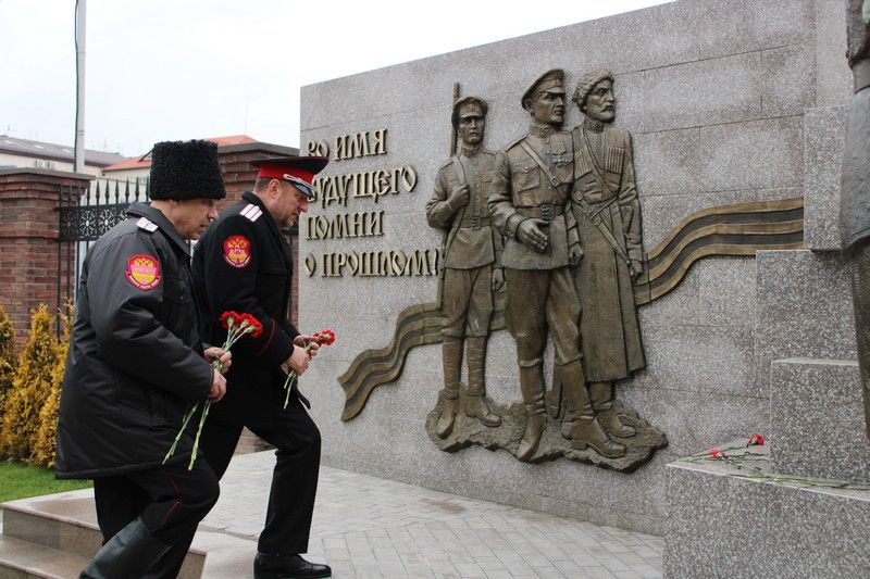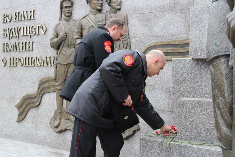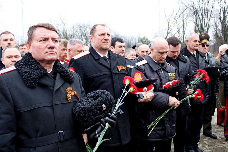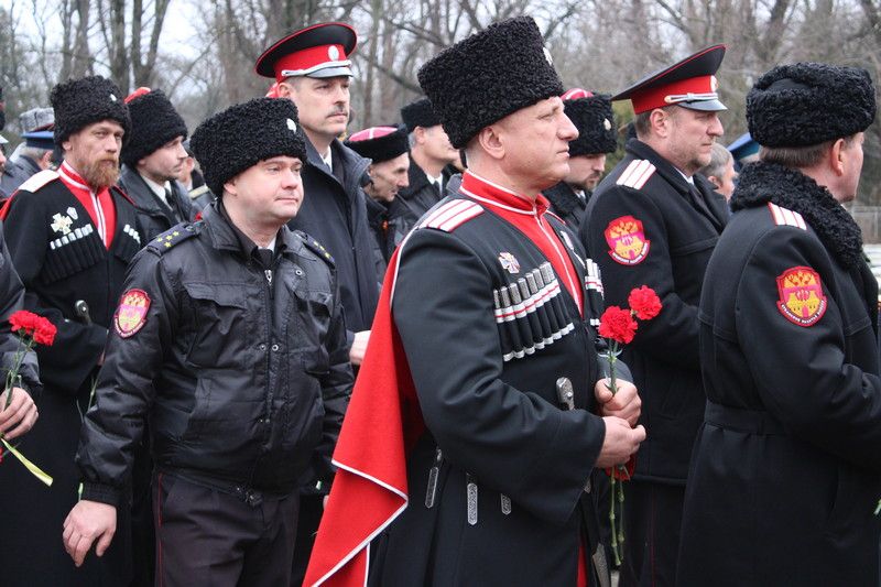 Далее казаки направились на «Расстрельный угол» отдать дань памяти и возложить цветы к мемориалу, посвященному погибшим казакам, что стали жертвами политических репрессий. К церемонии присоединился губернатор Кубани Вениамин Кондратьев и глава г. Краснодара Евгений Первышов, после возложения прошла минута молчания в честь покоящихся в этом месте братьев казаков.