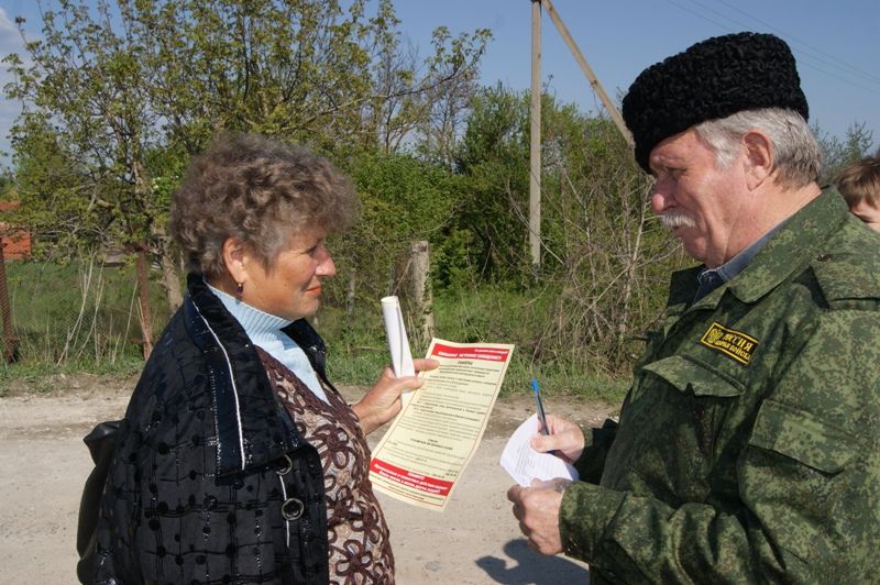 Казаки в составе групп проехали по садоводческим товариществам, раздав жителям памятки, где описан алгоритм действий при возникновении чрезвычайной ситуации.