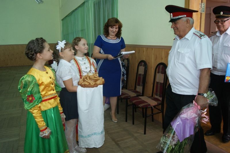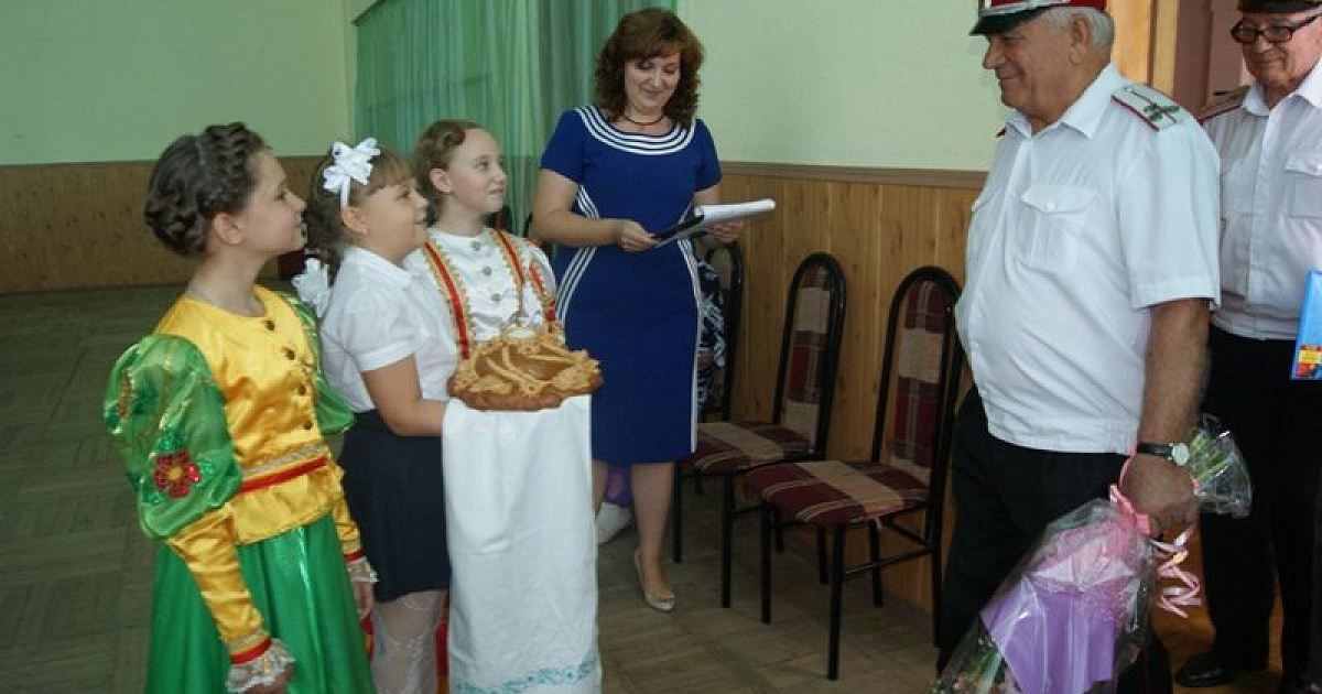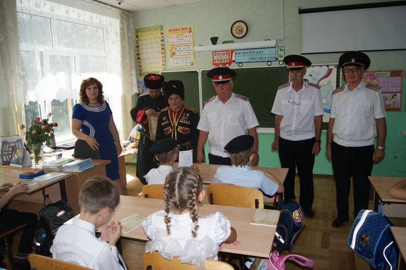 Заместитель атамана Екатеринодарского РКО, есаул Николай Левен вместе с председателем Совета стариков, подъесаулом Александром Борщёвым отправились в школу, где гостей ждали классные руководители и казаки- наставники из хуторского казачьего общества «Восточный курень», за которым закреплена 37 школа.