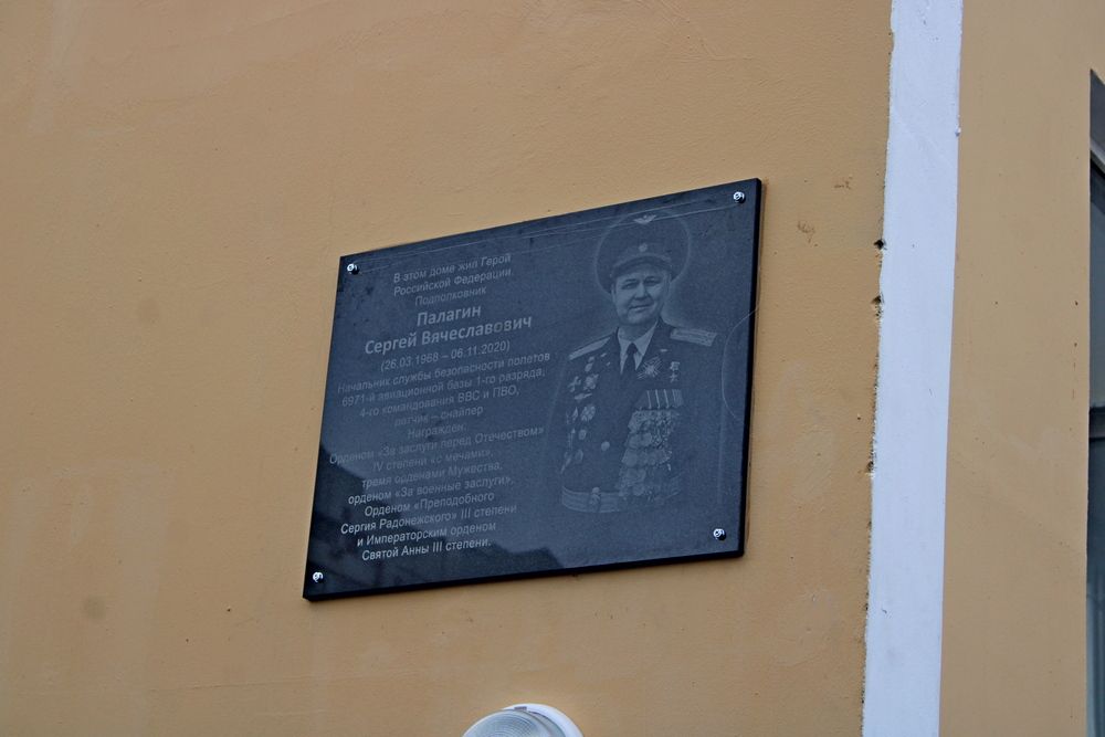 Мемориальную доску в честь Героя России, военного летчика Сергея Палагина установили на фасаде дома по ул. им. Карякина, 19, где он жил в последние годы. В церемонии приняли участие глава Краснодара Евгений Первышов, председатель городской Думы Вера Галушко, начальник управления по делам казачества и военнослужащим Алексей Клюшкин, исполняющий обязанности атамана Екатеринодарского районного казачьего общества есаул Юрий Шмельков, духовник Екатеринодарского РКО иерей Николай Симора, правление, казаки и казачья молодёжь краевой столицы.