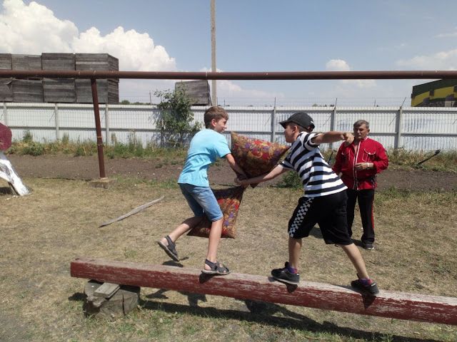 Далее стало еще веселей, одной из казачьих забав был бой подушками на деревянном бревне.
