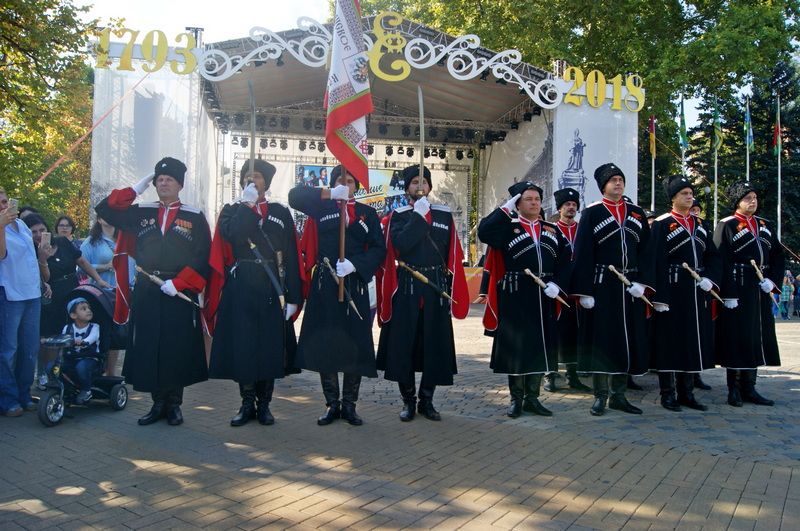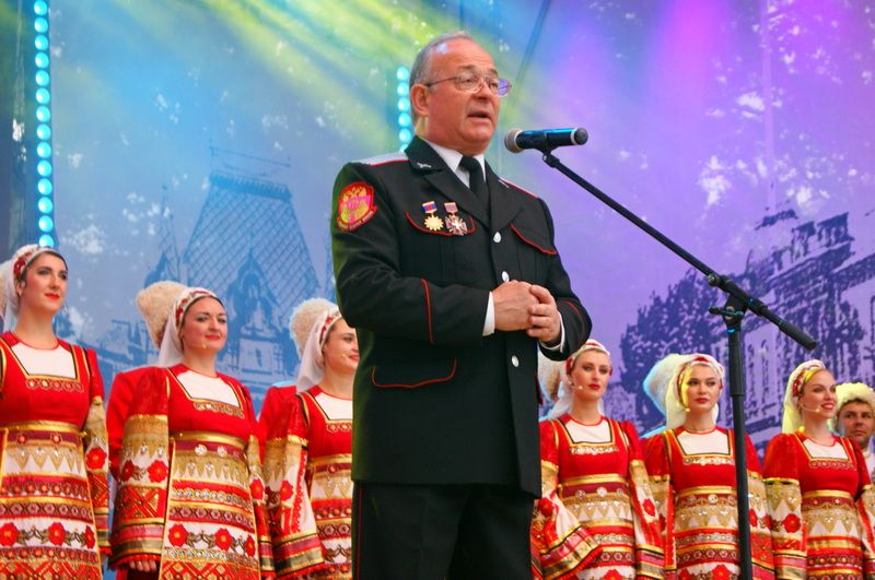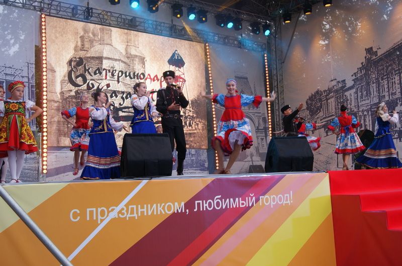 Далее стартовал большой концерт, где атаман Екатеринодарского РКО Сергей Васин поздравил жителей и гостей города с праздником, а продолжили концерт творческие коллективы и казаки города Краснодара.
