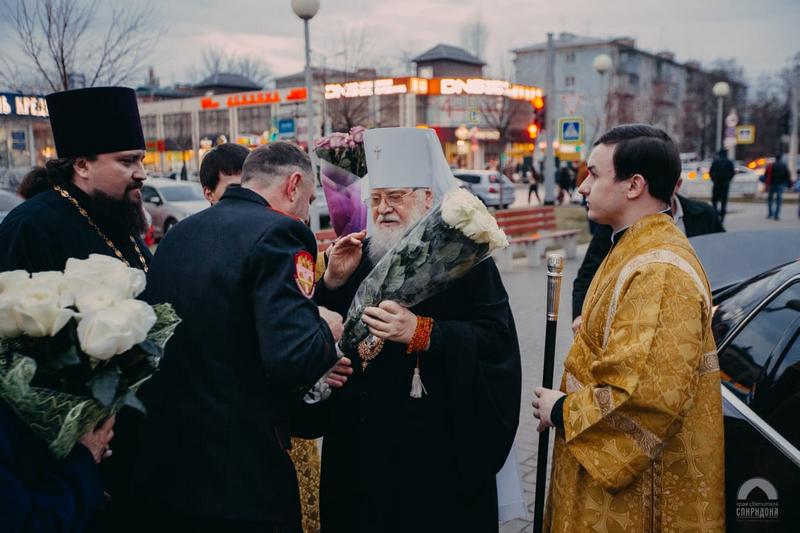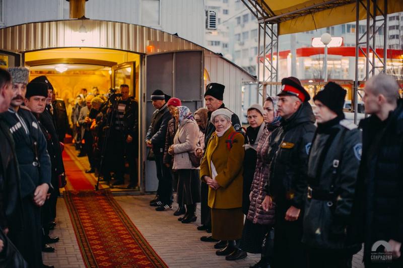 25 декабря в День памяти Святителя Спиридона Тримифунтского, казаки Екатеринодарского районного казачьего общества во главе с атаманом Алексеем Горбенко приняли участие в богослужении в Храме Святителя Спиридона города Краснодара, которое возглавлял Митрополит Екатеринодарский и Кубанский Исидор.