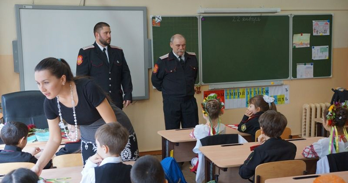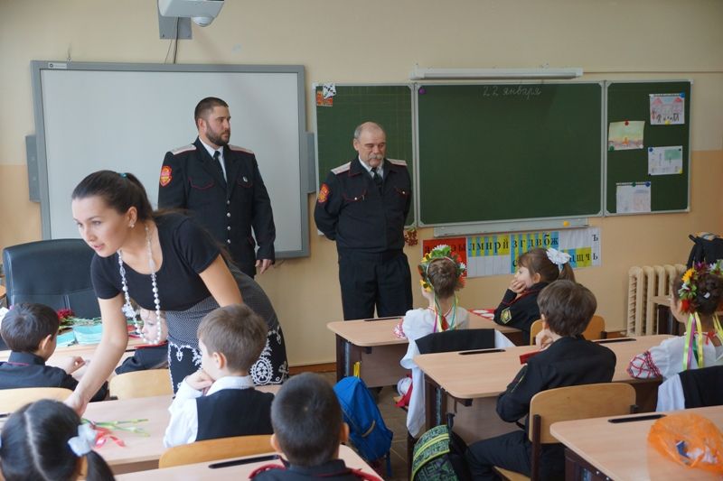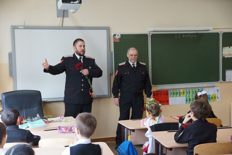В четверг 22 января в рамках месячника оборонно-массовой и военно-патриотической работы, казаки хуторского казачьего общества «Ореховатое» встретились с казачатами первого класса казачьей направленности средней школы №51.