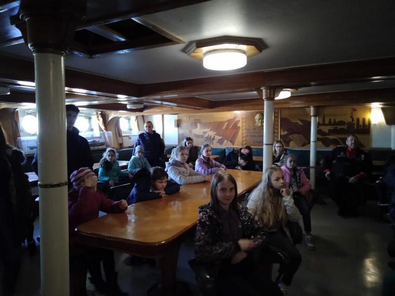 Экскурсия продолжилась на крейсере «Михаил Кутузов», где ребят ознакомили с устройством корабля, провели экскурсию по каютам корабля, рассказали о историю крейсера. Уже позже ребята прогулялись по набережной, наслаждаясь тёплой весенней погодой.