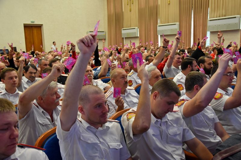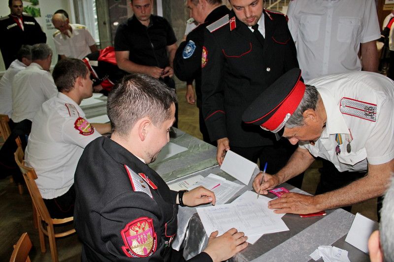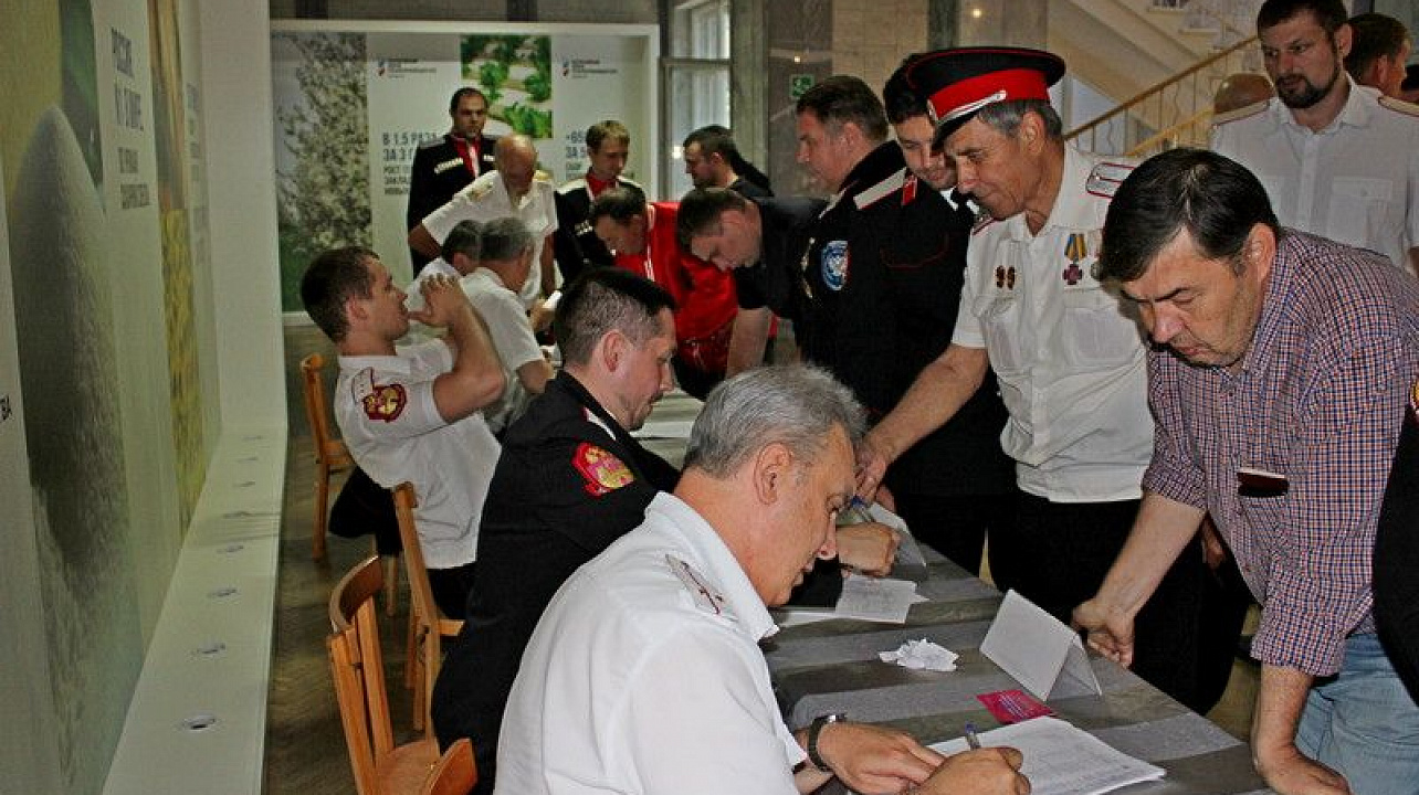 27 мая 2019Отчетный сбор состоялся 25 мая в актовом зале зоологического факультета Кубанского государственного аграрного университета. Уже по сложившейся традиции, сбор начался в 9 часов с регистрации участников, уже к 11 часам, к началу официальной части зарегистрировались и получили мандаты 427 казаков Екатеринодарского РКО, что составило более 2/3 от общего числа выборных казаков и превысило кворум почти на 100 человек.