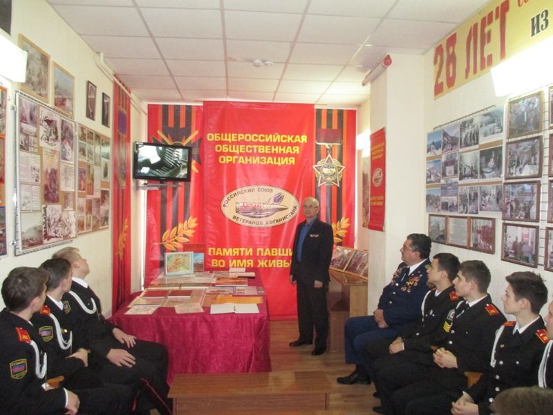 Мероприятие провели с кадетами ветераны боевых действий в Афганистане председатель Правления отделения «РСВА» П.В.Золочевский и подполковник ВВС С.А.Давыдков. Встреча ветеранов и кадетов была посвящена 38-летию - ввода ограниченного контингента советских войск в Демократическую Республику Афганистан, для оказания интернациональной помощи дружественному народу.