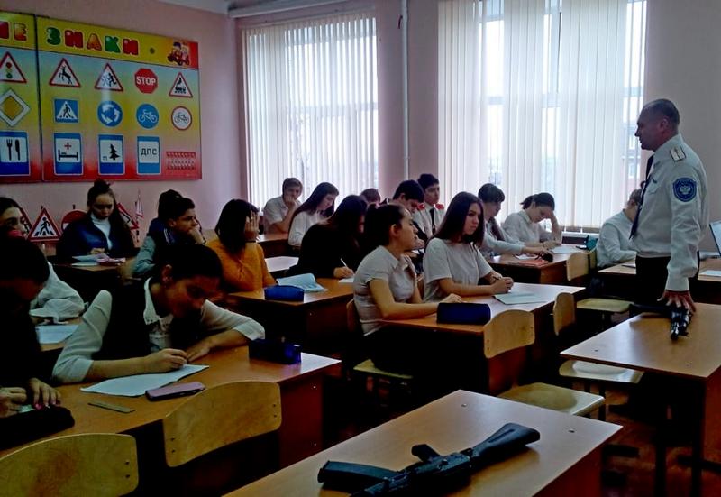26 января казак-наставник хуторского казачьего общества «Суворовский Редут» Андрей Артюхов провел урок мужества для 9 «Б» класса средней образовательной школы №17, а так же ознакомил ребят с неполной сборкой-разборкой автомата Калашникова.