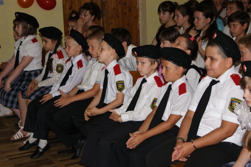 Мероприятие началось с выступления учащихся казачьего 2 «Б»класса. Ребята прочитали стихи и спели песню «Поздравляю». Затем Юрий Козырин обратился к ученикам, пожелав «космических успехов и достижений» в их дальнейшем жизненном пути.