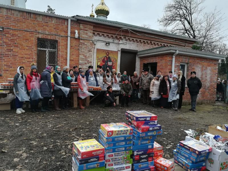 Акция проходила возле Храма всех Святых на Всесвятском кладбище. Перед выдачей продуктов и подарков прошёл молебен. В виду достаточно холодной погоды казаки и добровольцы выдавали нуждающимся горячий чай. Было роздано 420 пакетов с продуктами, а так же 140 новогодних подарков для детей из малоимущих семей.
