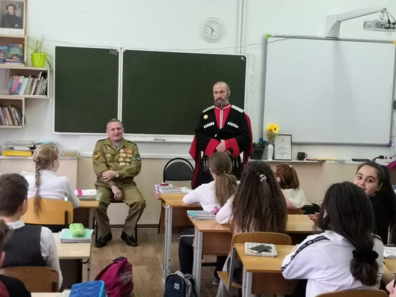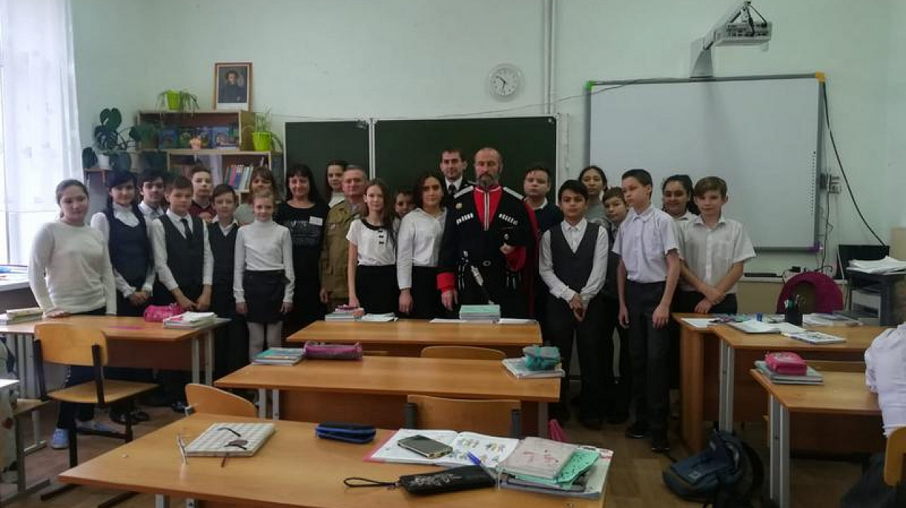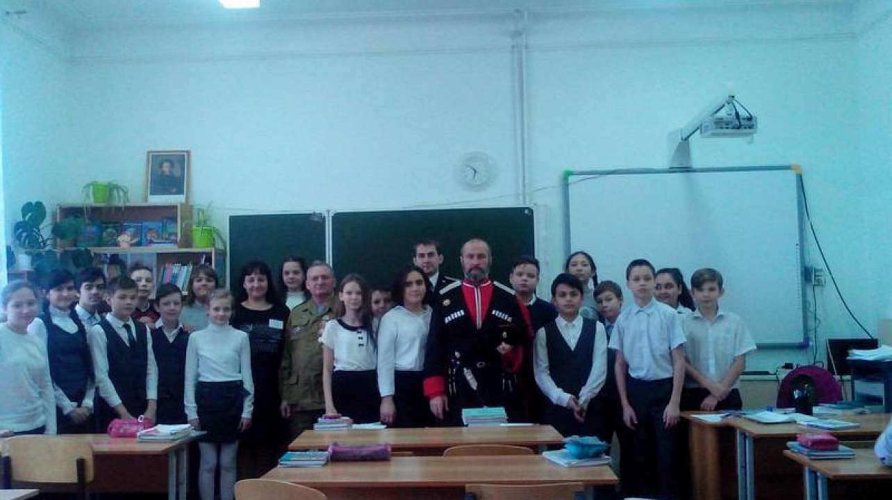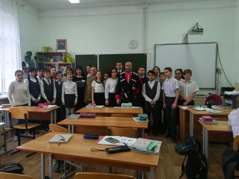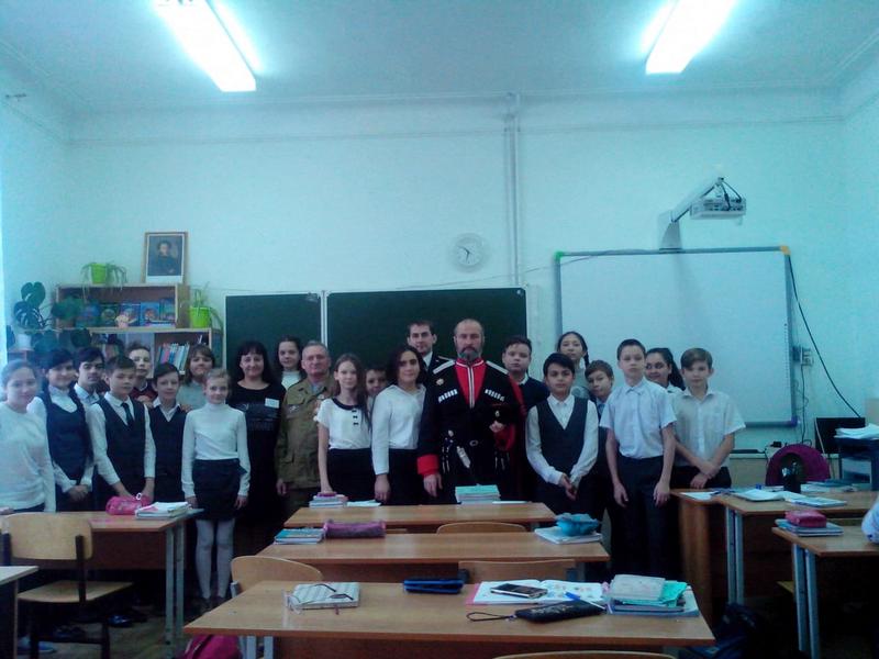 28 января в школе №29 казаки хуторского казачьего общества «им. атамана Величко» провели урок мужества для 6 «А» и 6 «В» классов.