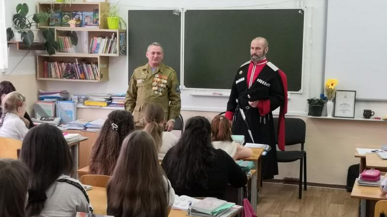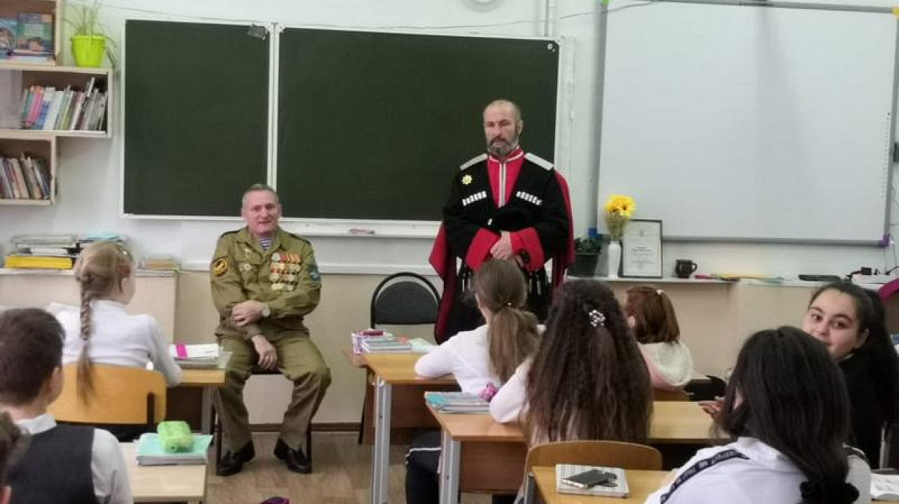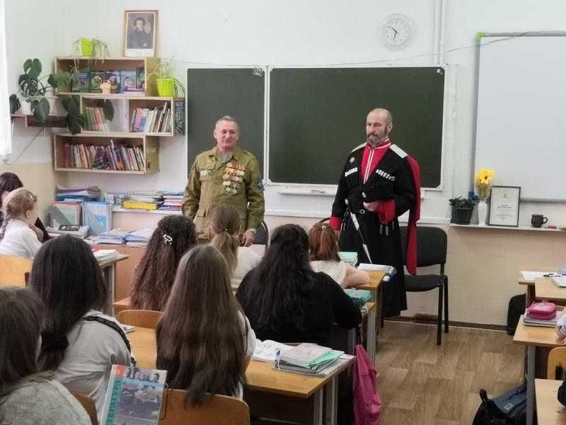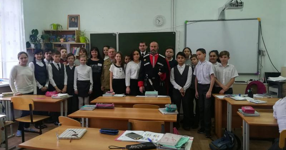 28 января в школе №29 казаки хуторского казачьего общества «им. атамана Величко» провели урок мужества для 6 «А» и 6 «В» классов.