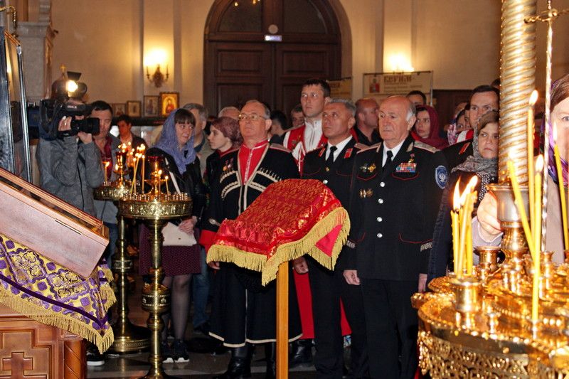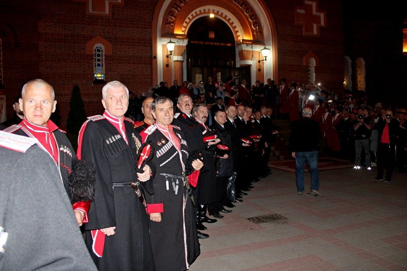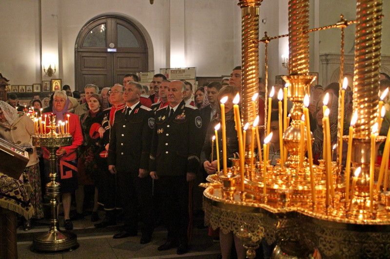 В ночь с 27 на 28 апреля казаки Екатеринодарского районного казачьего общества приняли активное участие в праздничных пасхальных службах в церквях, соборах и часовнях православных приходов кубанской столицы. Более 100 казаков приняли участие в богослужении в Екатерининском кафедральном соборе, которое провел митрополит Екатеринодаский и Кубанский Исидор. Также службу посетили губернатор Кубани Вениамин Кондратьев и глава Краснодара Евгений Первышов. Пасхальное богослужение длилось больше четырёх часов.