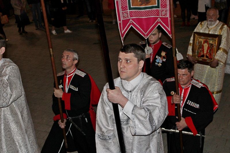 Так же одно из самых массовых богослужений прошло в войсковом соборе «Александра Невского» Кубанского казачьего войска, в праздничной службе участвовал атаман кубанского казачьего войска Николай Долуда, атаман Екатеринодарского отдела Виктор Светличный, атаман Екатеринодарского районного казачьего общества Сергей Васин, а также казаки, казачья молодёжь, жители и гости города. Ближе к полуночи под звон колоколов казаки совместно со священнослужителями и прихожанами храмов совершили крестный ход и возвестили о Воскресении Христовом.