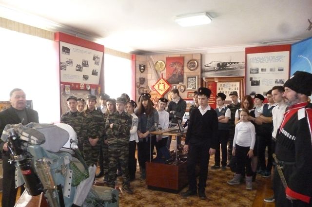 24 января управлением по делам казачества и военнослужащих администрации муниципального образования город Краснодар, совместно с Хуторским казачьим обществом «Имени атамана В.Величко» была организована экскурсия учеников общеобразовательной школы №7 города Краснодара в музей боевой славы военно-воздушных сил Краснодарского высшего военного авиационного училища лётчиков имени Героя Советского Союза Анатолия Константиновича Серова.
