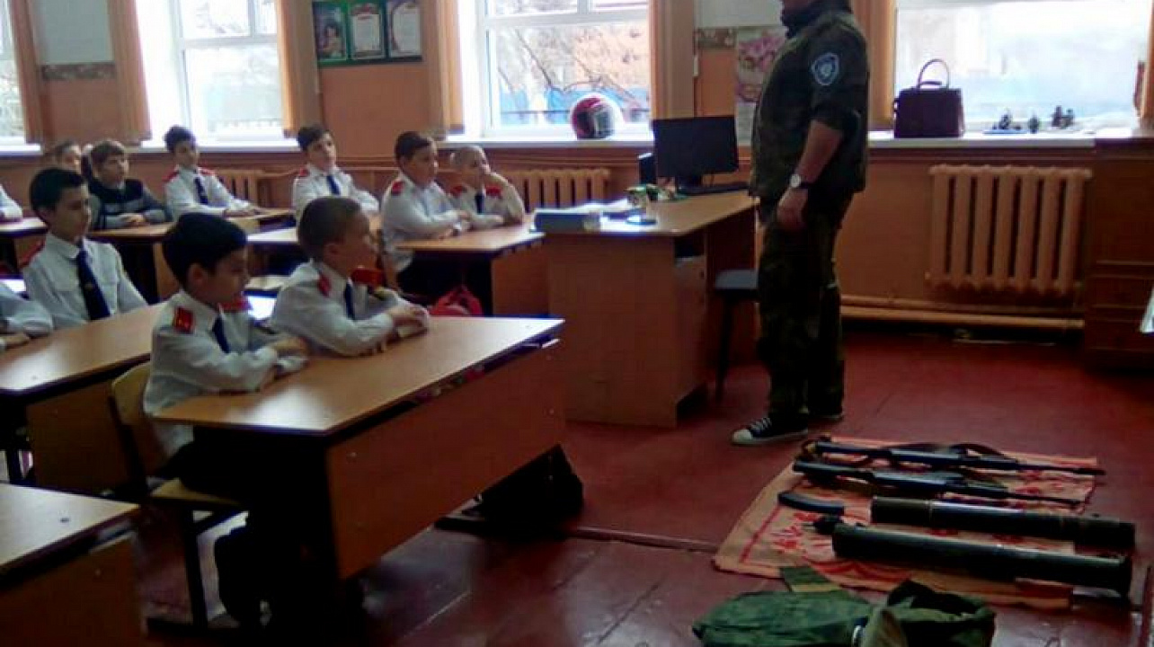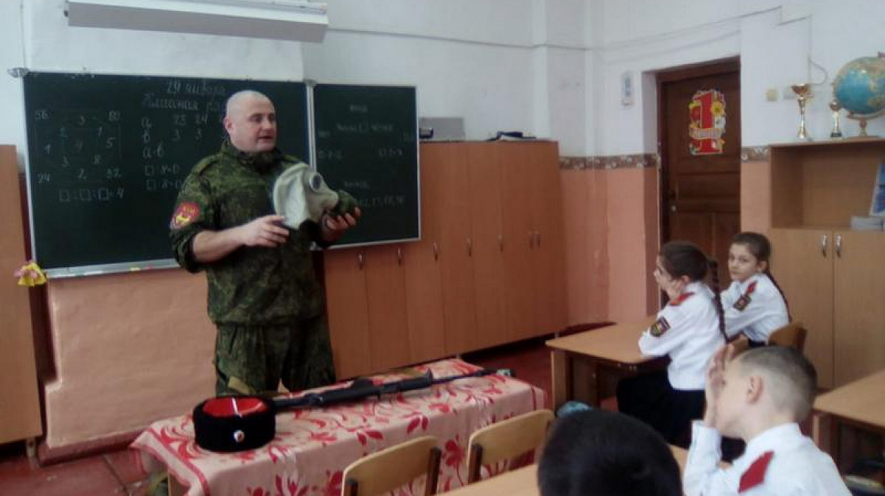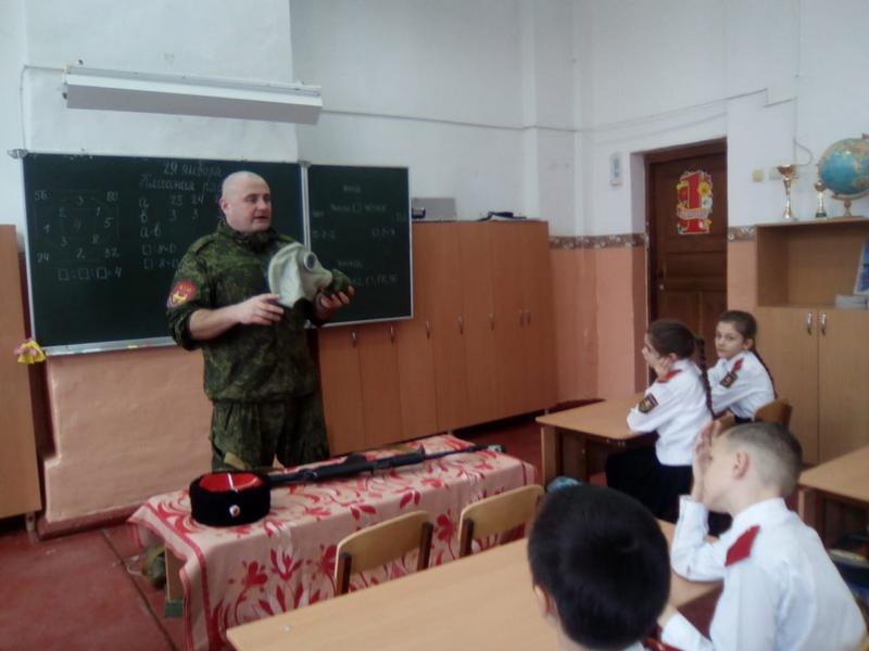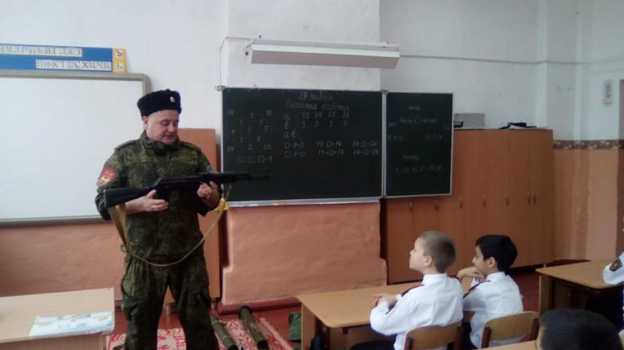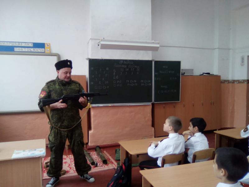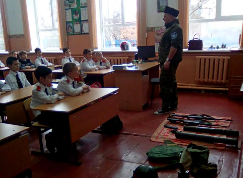 Казачатам рассказали и показали, как применяется те или иные средства защиты, а так же продемонстрировали современные виды вооружения. После урока ребятам разрешили подержать в руках и лично ознакомиться с учебным оружием. Школьники долго не отпускали казака, мальчишкам очень понравился урок, каждый хотел потрогать вооружение и примерить противогаз. Урок приурочили к ежегодному месячнику оборонно-массовой и военно-патриотической работы, который стартовал в Краснодарском крае 23 января.