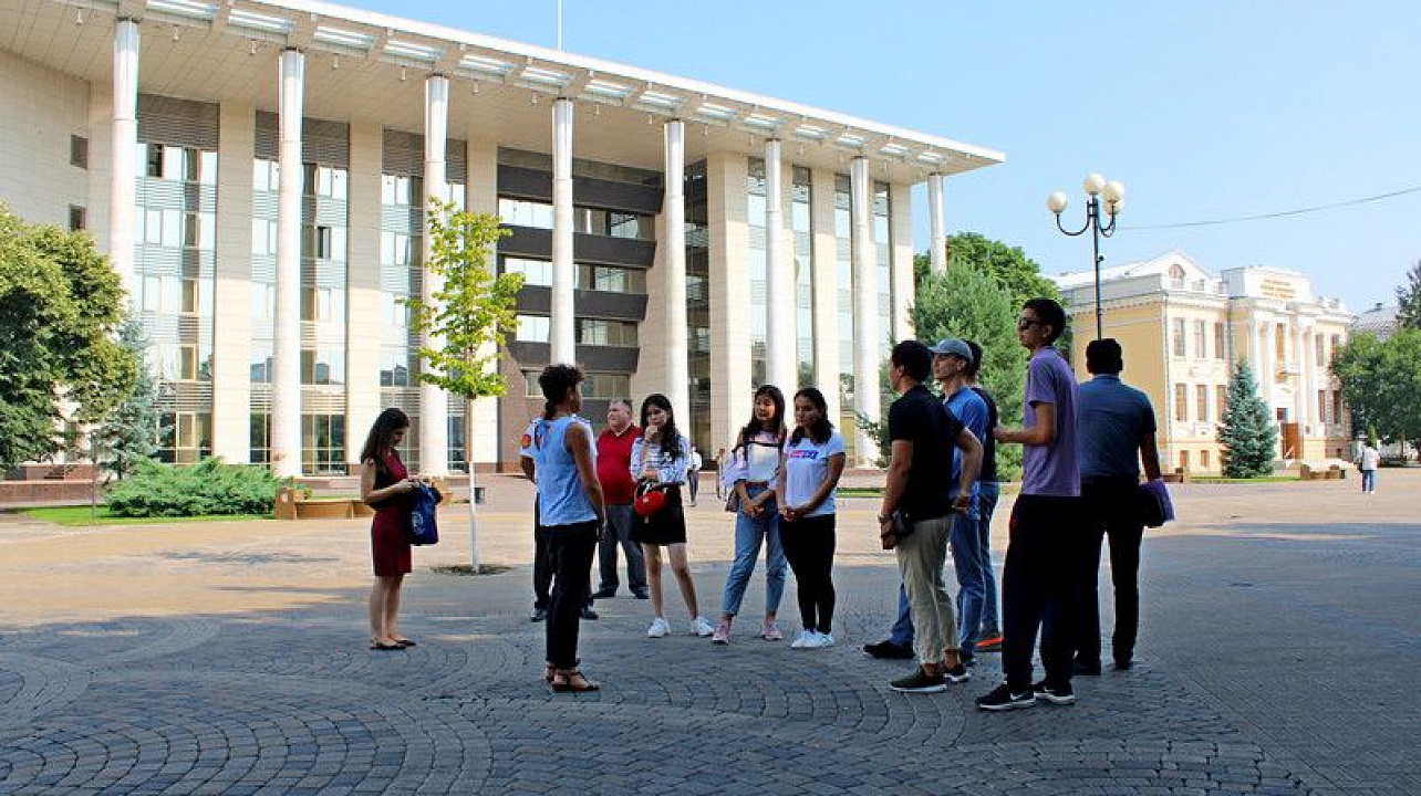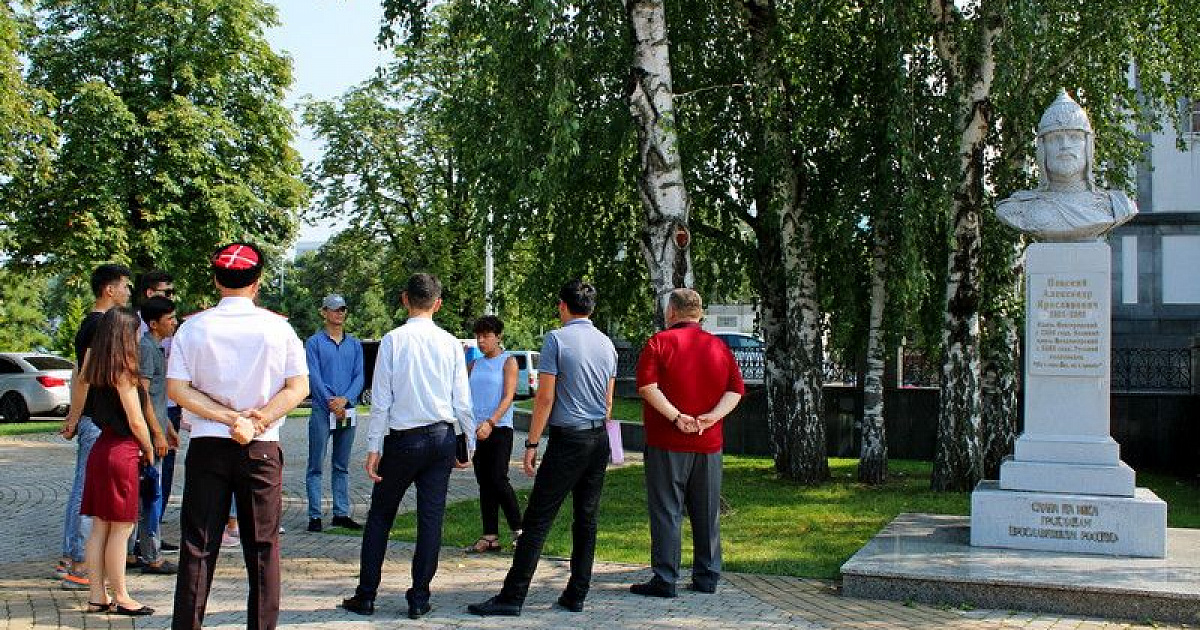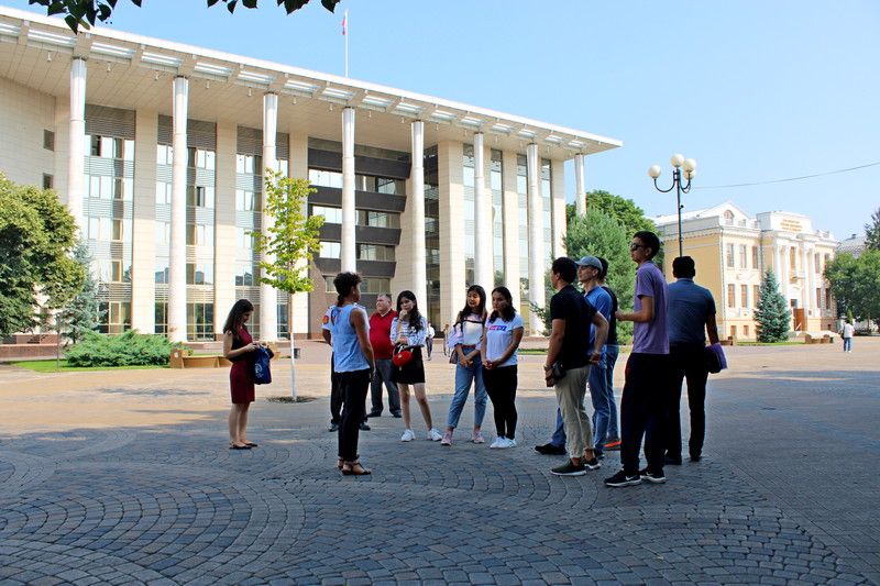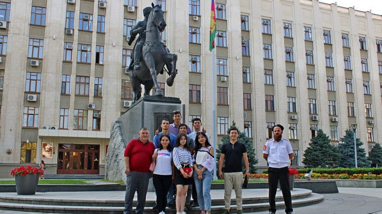 Далее неспешным шагом делегация из Узбекистана прошла мимо казачьей площади и здания законодательного собрания края к памятнику императрице Екатерине II, которая даровала казакам эту землю. Молодым ребятам было очень интересно слушать и даже палящий кубанский зной не так сильно отвлекал, далее экскурсия прошла мимо концертного зала Кубанского казачьего хора вдоль по улице Красной, здания которой таят в себе сотни лет истории Кубанских казаков.