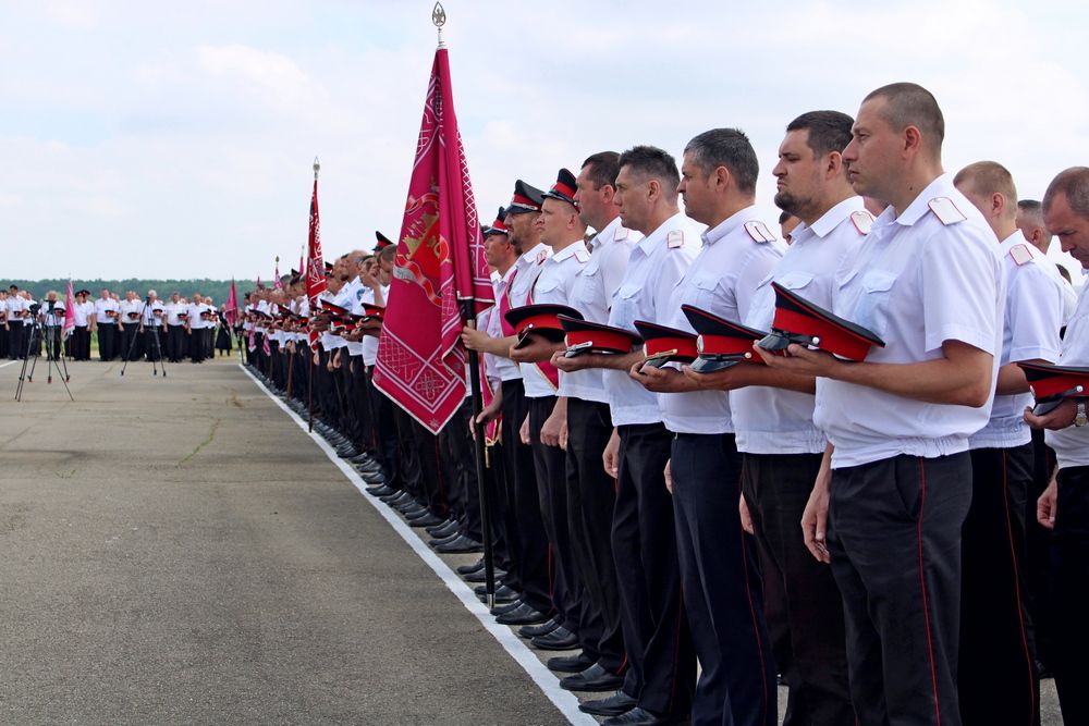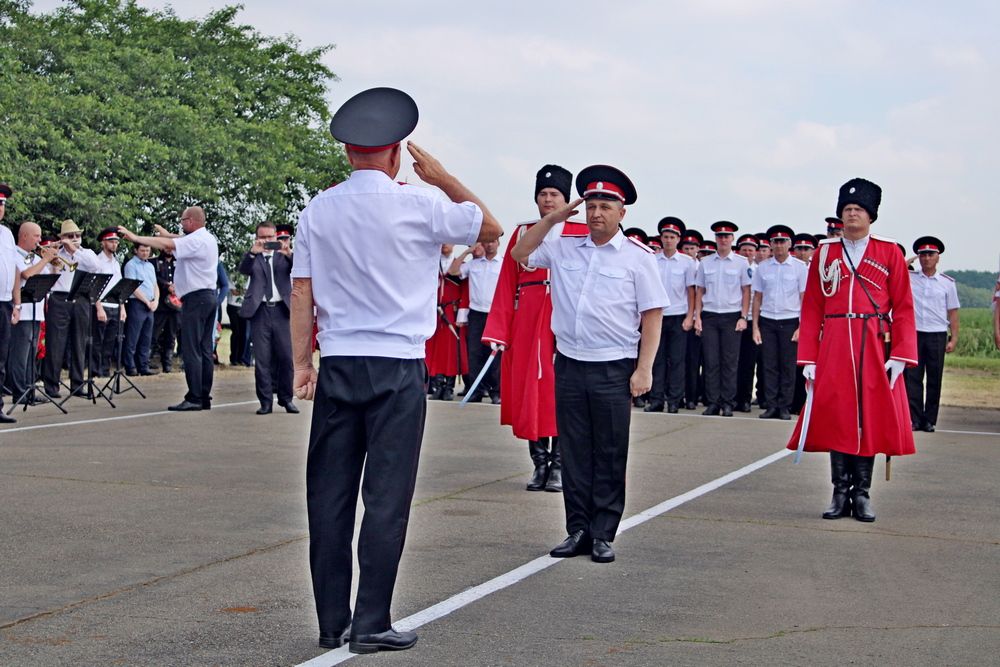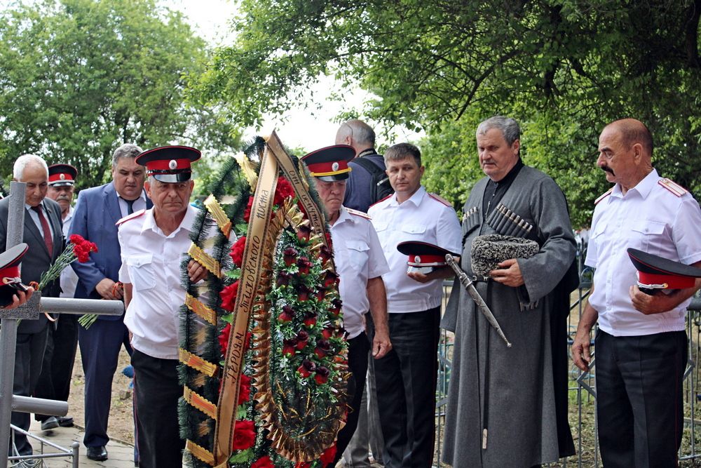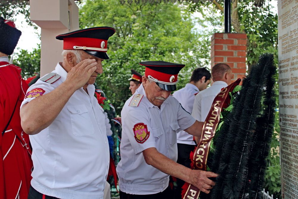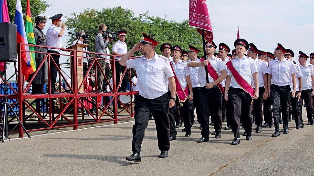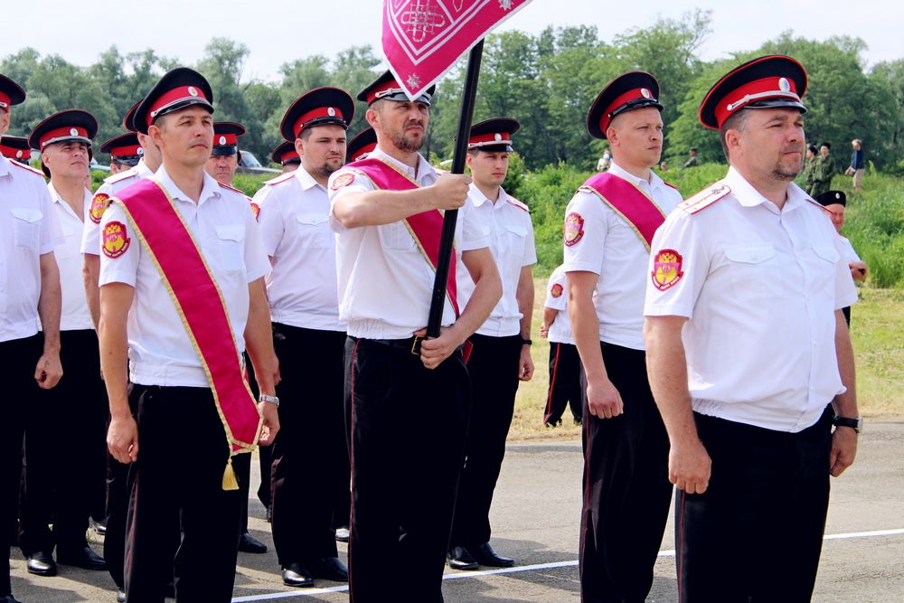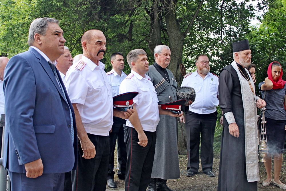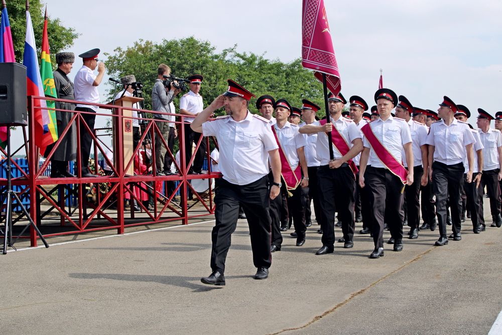 Началось мероприятие с торжественного построения у памятника погибшим казакам и поминальной панихиды. А после парадные расчеты казаков прошли по плацу маршем.