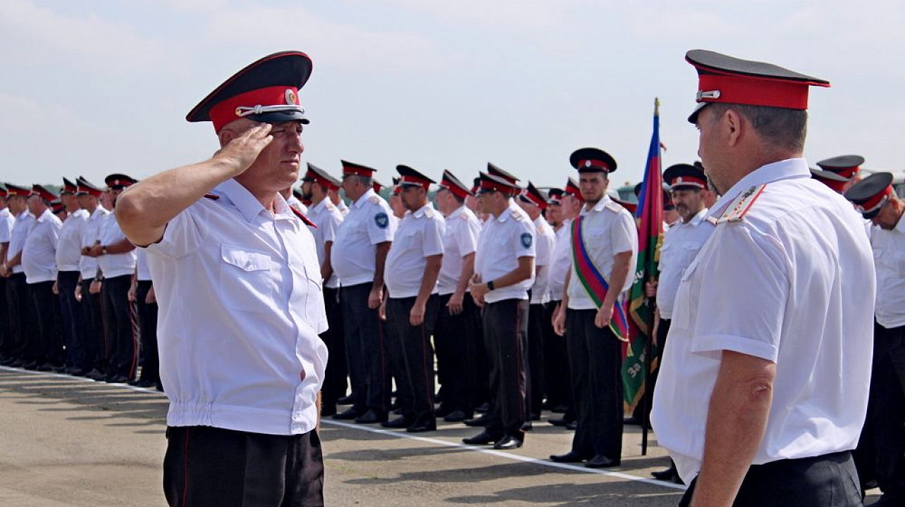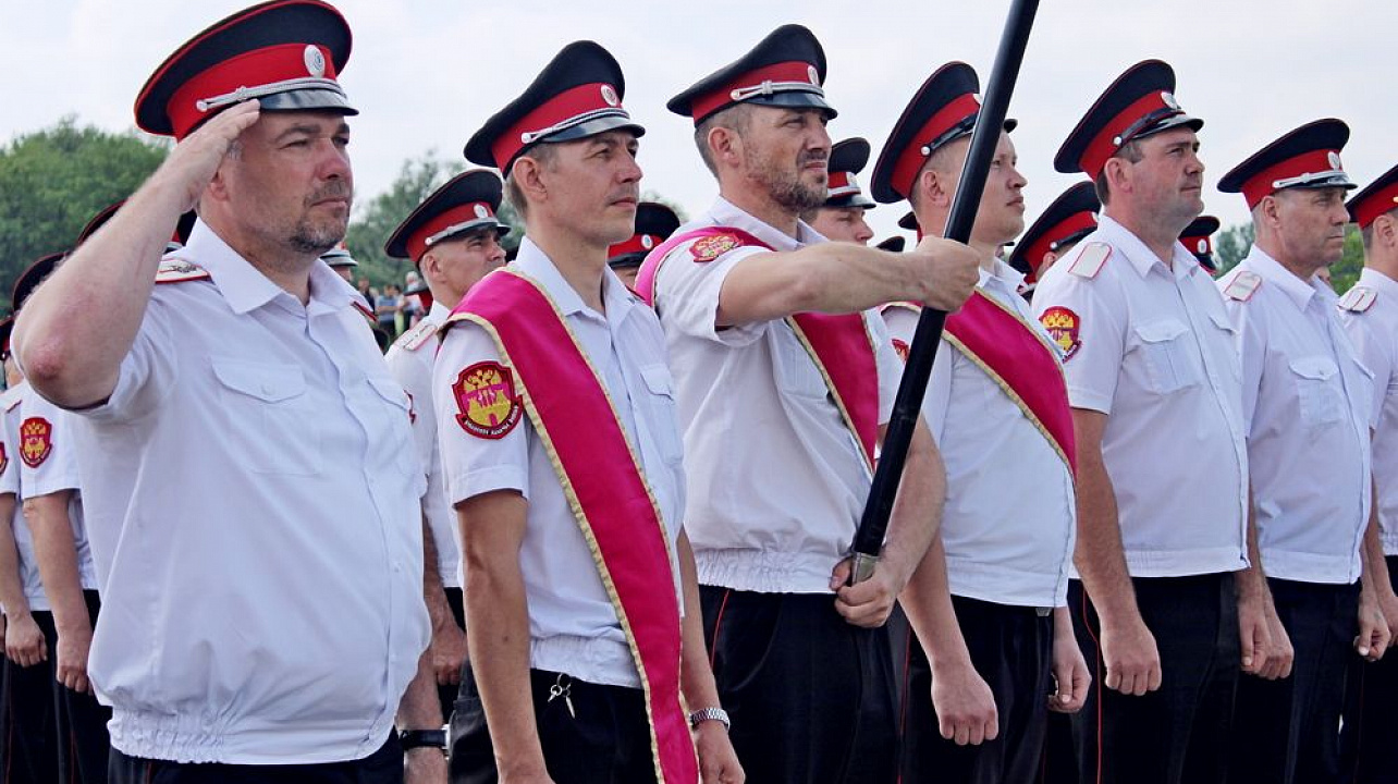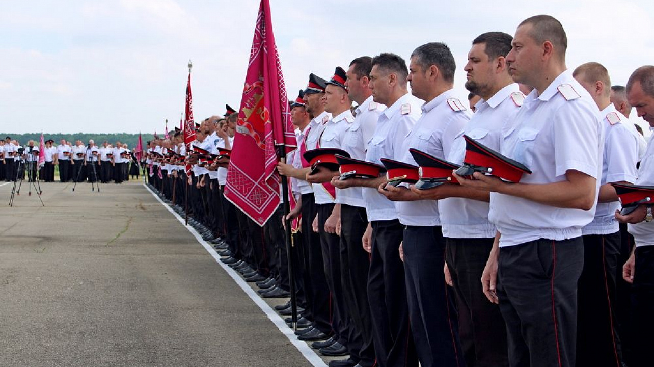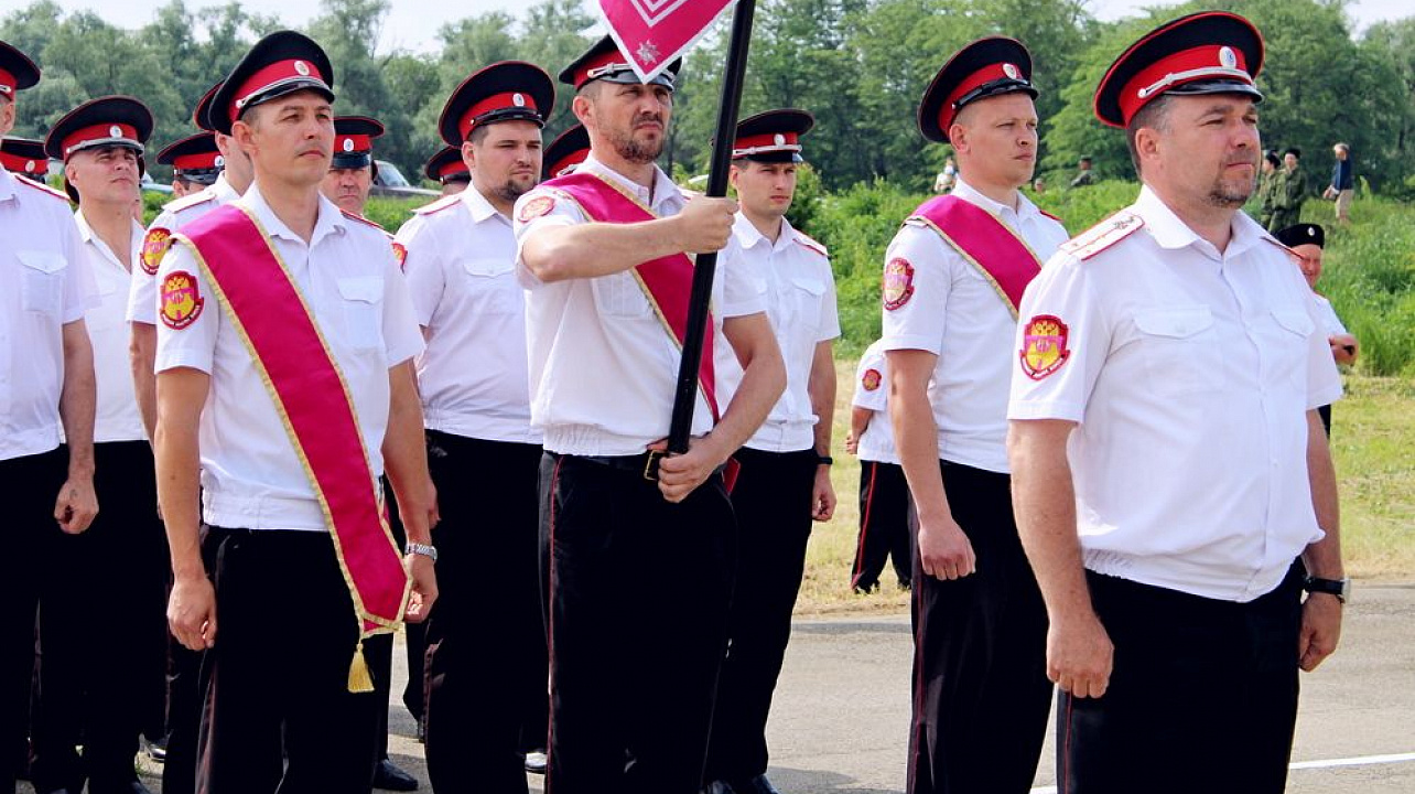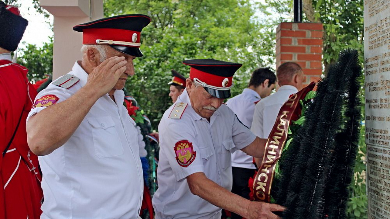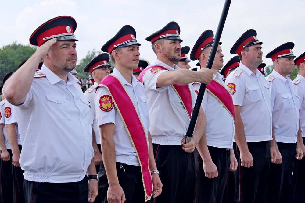 Началось мероприятие с торжественного построения у памятника погибшим казакам и поминальной панихиды. А после парадные расчеты казаков прошли по плацу маршем.
