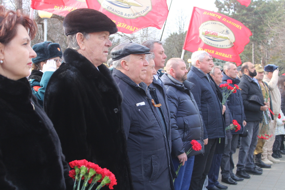 После митинга все участники возложили венки и цветы к мемориалу «Сынам Кубани, павшим в Афганистане». Память погибших почтили минутой молчания.