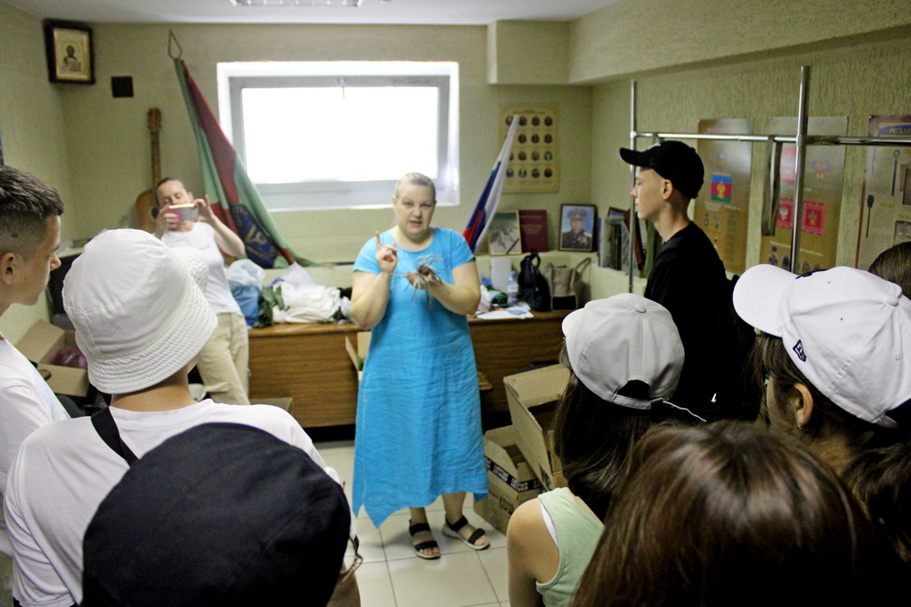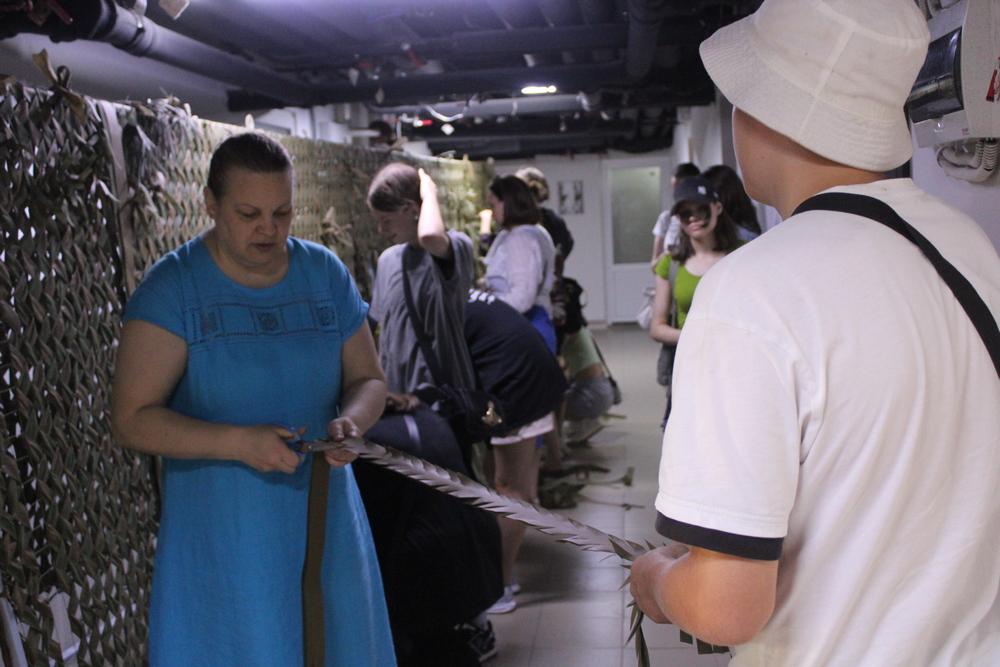 Ребята с большим интересом послушали о том, как применяются маскировочные сети в условиях ведения боевых действий, о том, что такие сети помогут военным скрыть от глаз противника технику, инженерные сооружения и места укрытия самих бойцов. Каждый волонтёр, который плетет сети, верит, что они помогут сохранить чью-то жизнь. Также ребятам рассказали о том, как правильно плести маскировочные сети, ведь техника плетения маскировочной сети очень трудоемкая и в ней много нюансов, каждая мелочь важна, ведь маскировочная сеть должна выглядеть естественно.