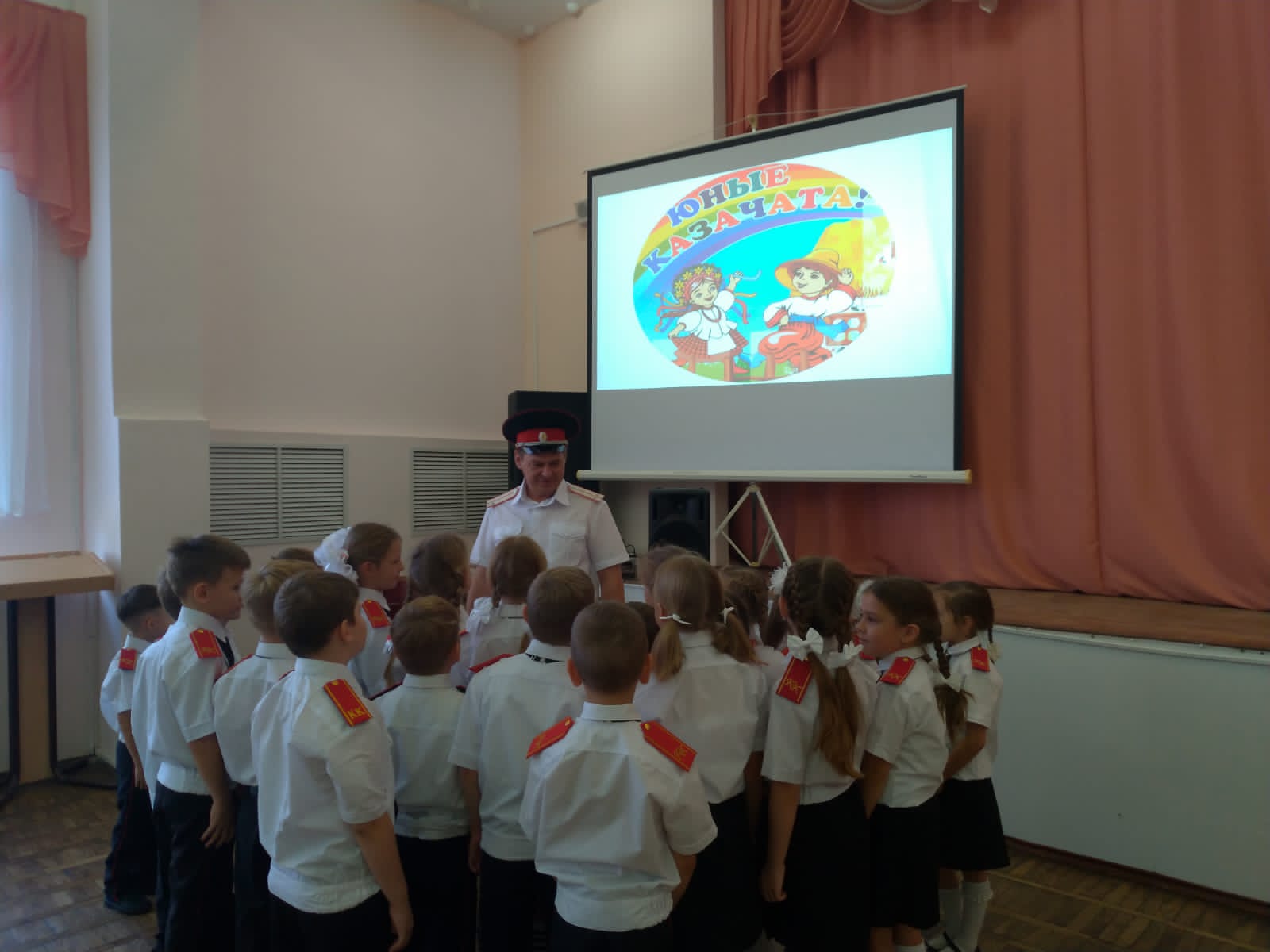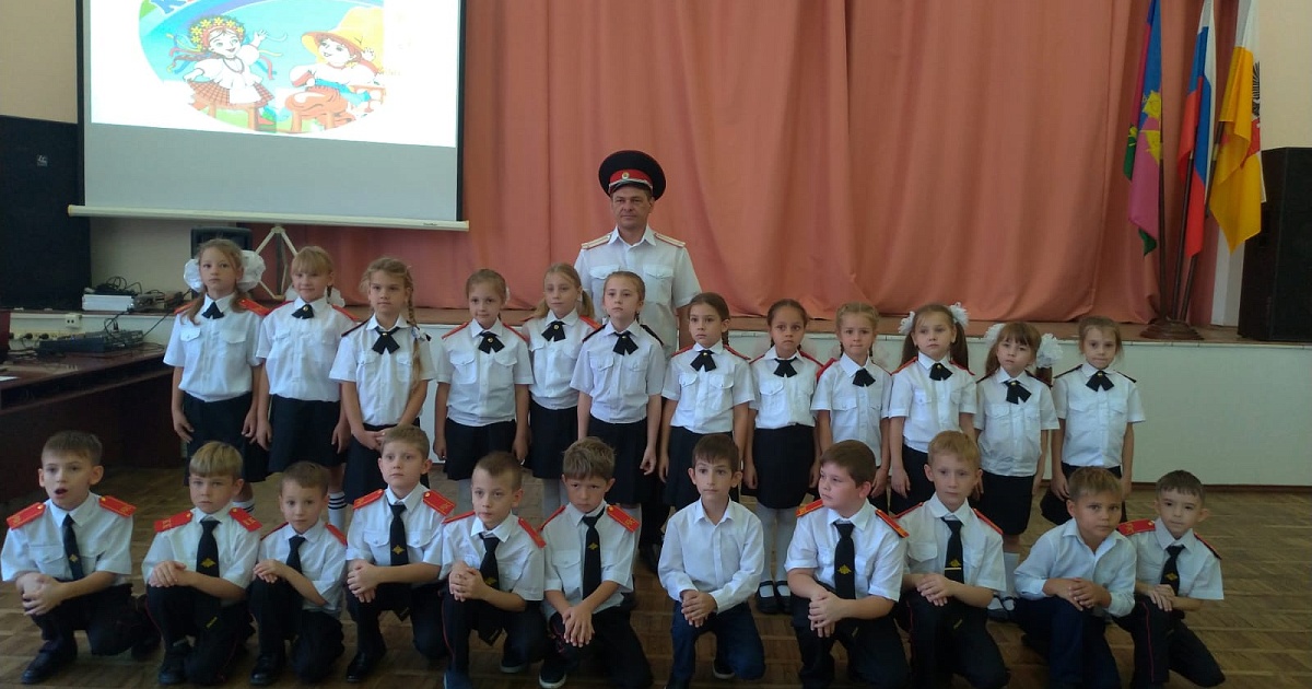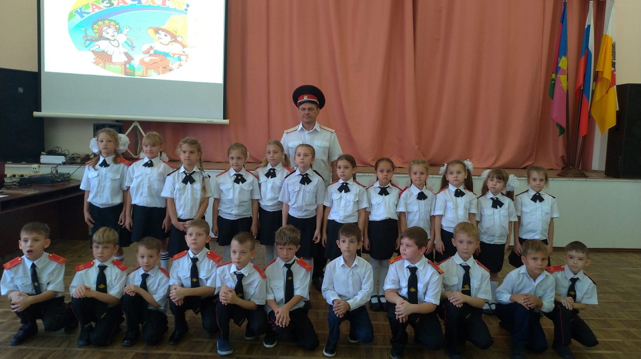 Сегодня в 1 «К» классе школы № 35 города Краснодара прошло торжественное посвящение в казачата, посвящённое 230-годовщине основания города Краснодара.
