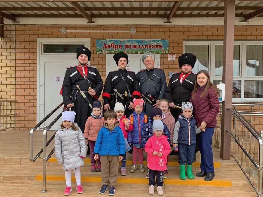 Сегодня казаки хуторского казачьего общества «Ермоловский курень» Екатеринодарского районного казачьего общества совместно с сотрудниками муниципального казённого учреждения «Центр развития традиционной казачьей культуры города Краснодара» провели просветительскую беседу с ребятами из дошкольного учреждения МАДОУ МО г. Краснодар «Центр-детский сад №118» на тему «О казаках, их истории и быте».