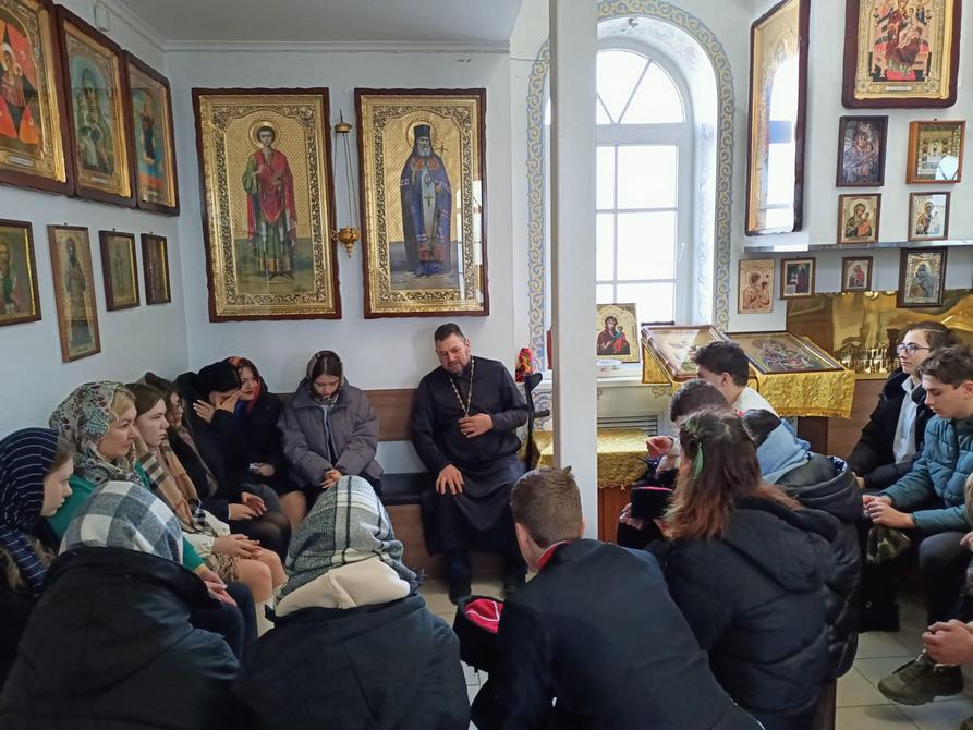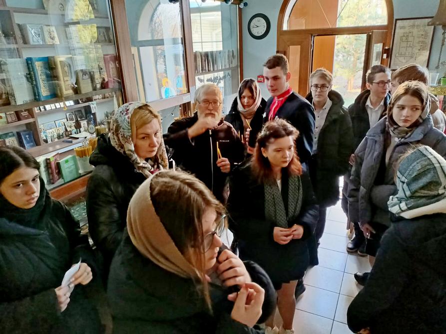 Проведя обзорную экскурсию по Храму, отец Николай провёл познавательную проповедь, рассказал о Храме. Ребята, затаив дыхание, внимательно слушали священнослужителя.