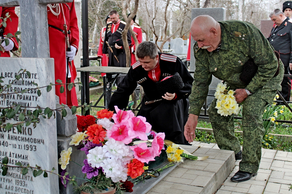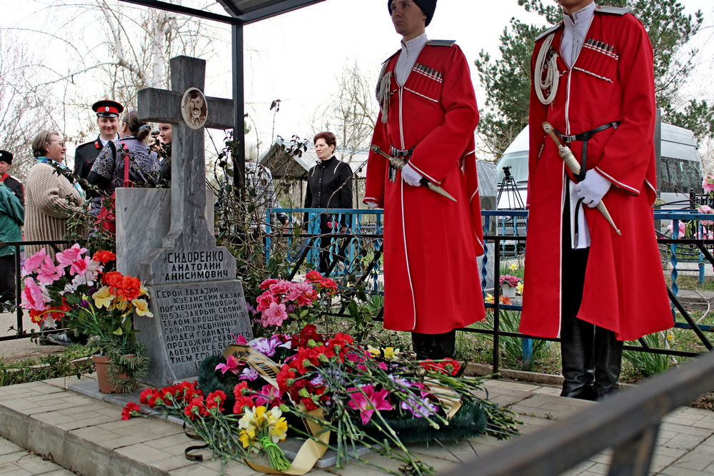 Также в этот день участники мероприятия вспоминали погибших во время военного конфликта в Абхазии, в их числе казак Анатолий Сидоренко. Герой Абхазии накрыл гранату своим телом и ценой собственной жизни спас не один десяток мирных жителей. Могила Анатолия Сидоренко находится рядом с местом упокоения героев Приднестровья.