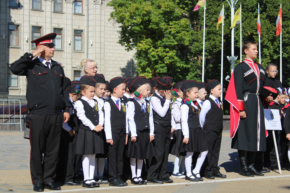 Церемония прошла 25 сентября, на Казачьей площади. В ней приняли участие председатель городской Думы Краснодара Вера Галушко, атаман Екатеринодарского отдельского казачьего общества, есаул Вадим Чернов, заместитель главы Краснодара Лилиана Егорова, духовник Екатеринодарского районного казачьего общества, иерей Николай Симора, учащиеся казачьих классов, их учителя и родители.