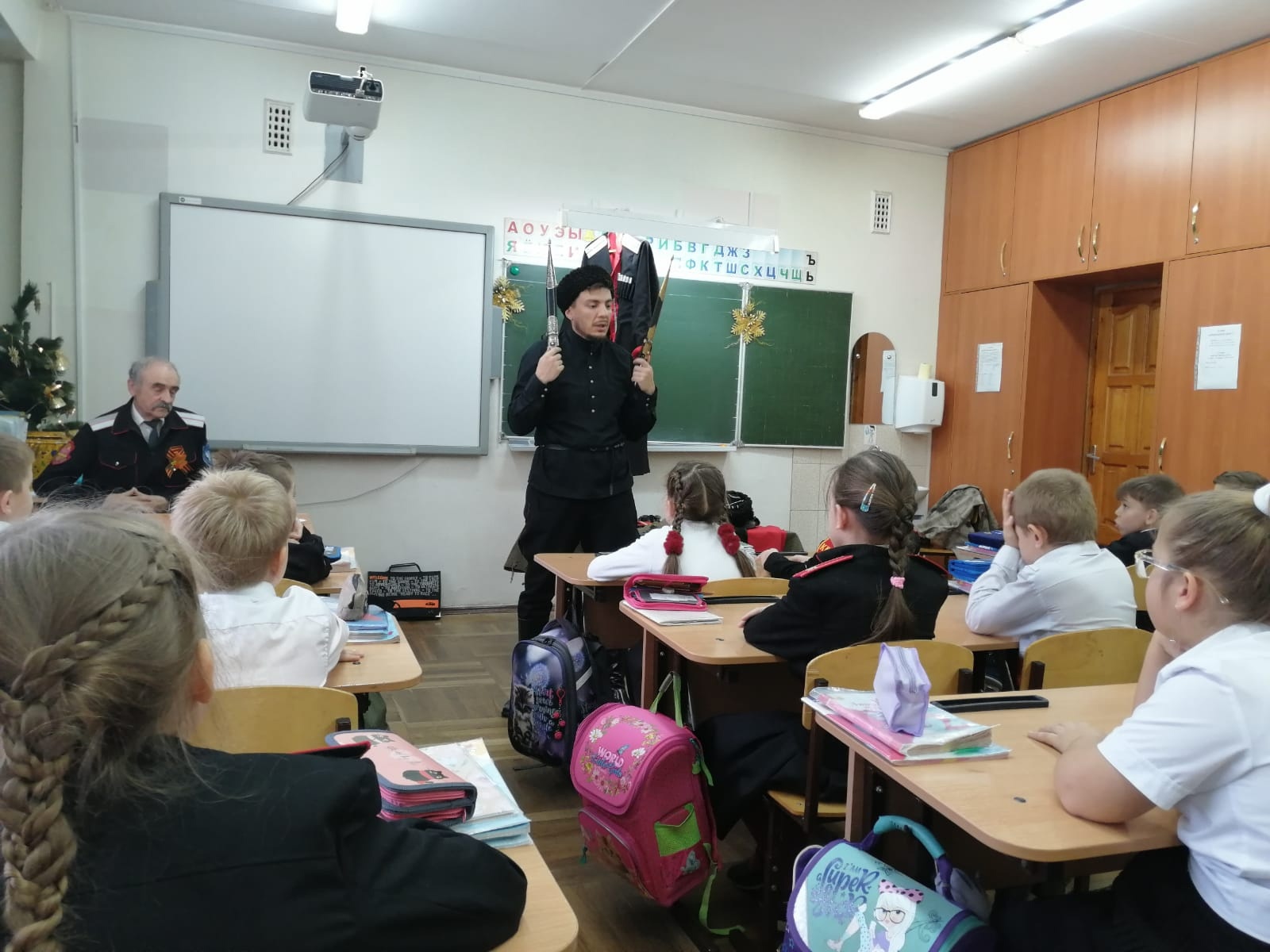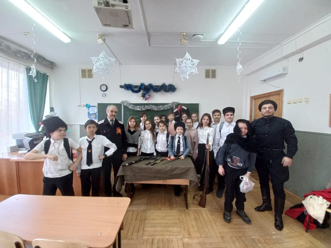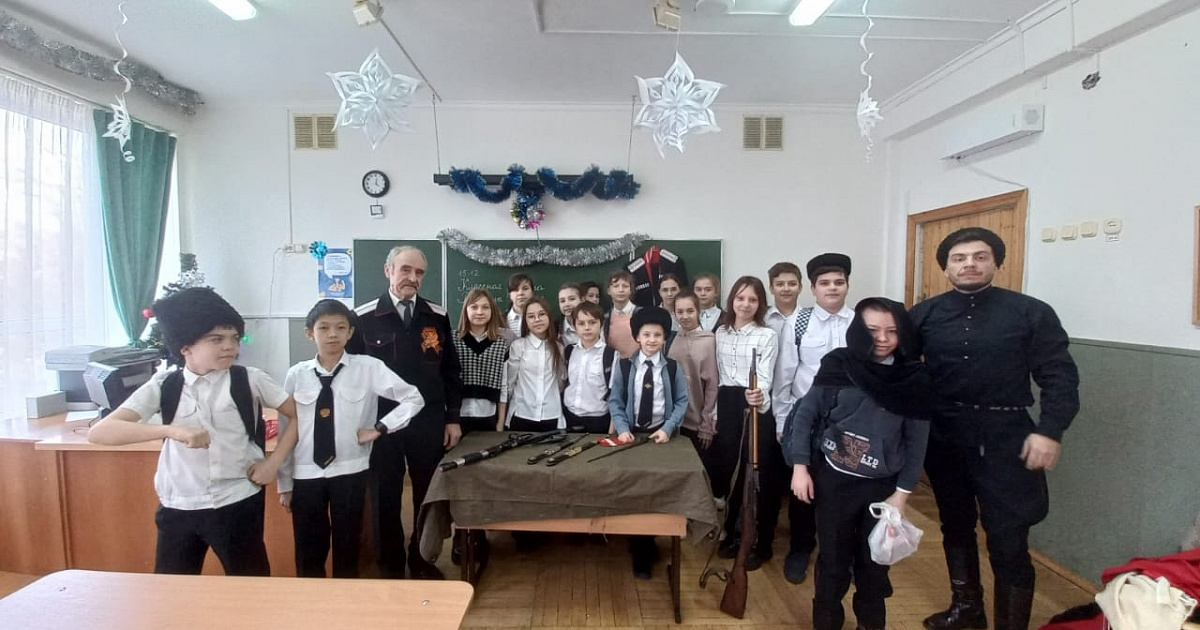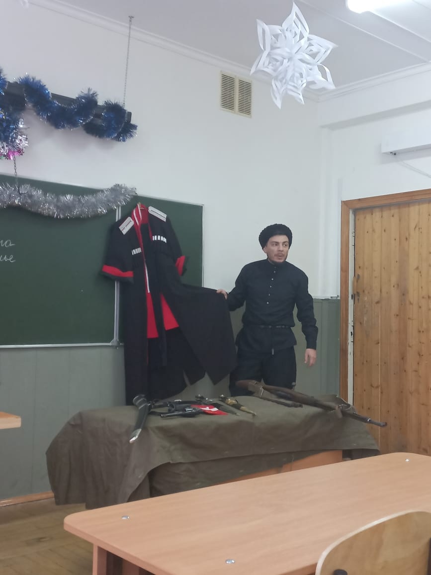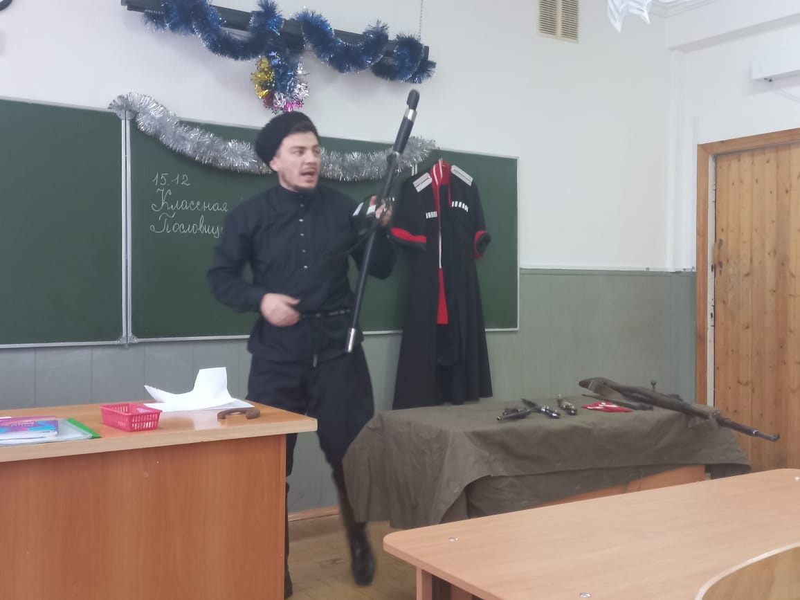 15 декабря в МБОУ СОШ № 51 города Краснодара сотрудники муниципального казённого учреждения муниципального образования город Краснодар «Центр развития традиционной казачьей культуры города Краснодара» осуществляющие деятельность казаков-наставников провели уроки в классах казачьей направленности на тему «Одежда и вооружение Кубанских казаков.