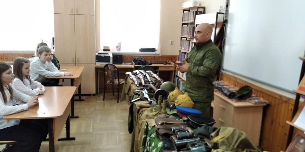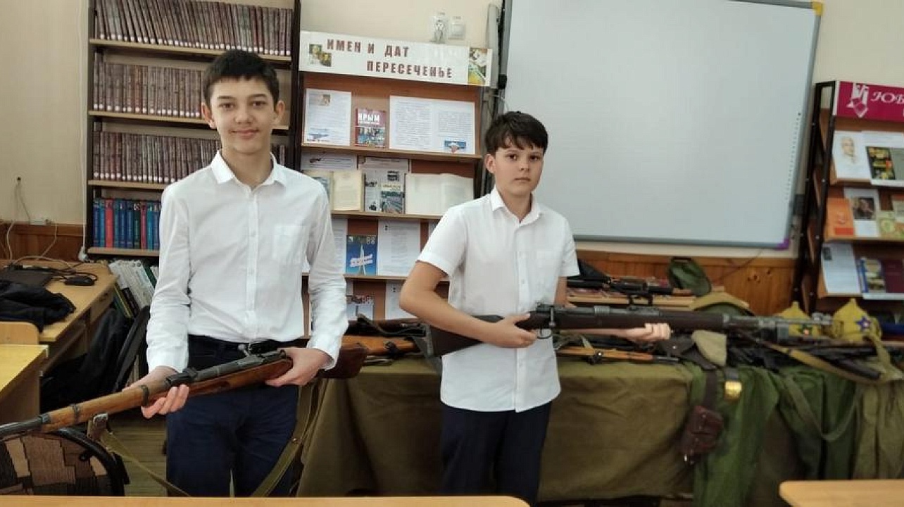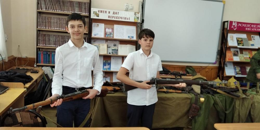 Для казачьих классов гимназии наставник Николай Лихтинов представил свою Выставку образцов вооружения и экипировки времён Великой Отечественной войны