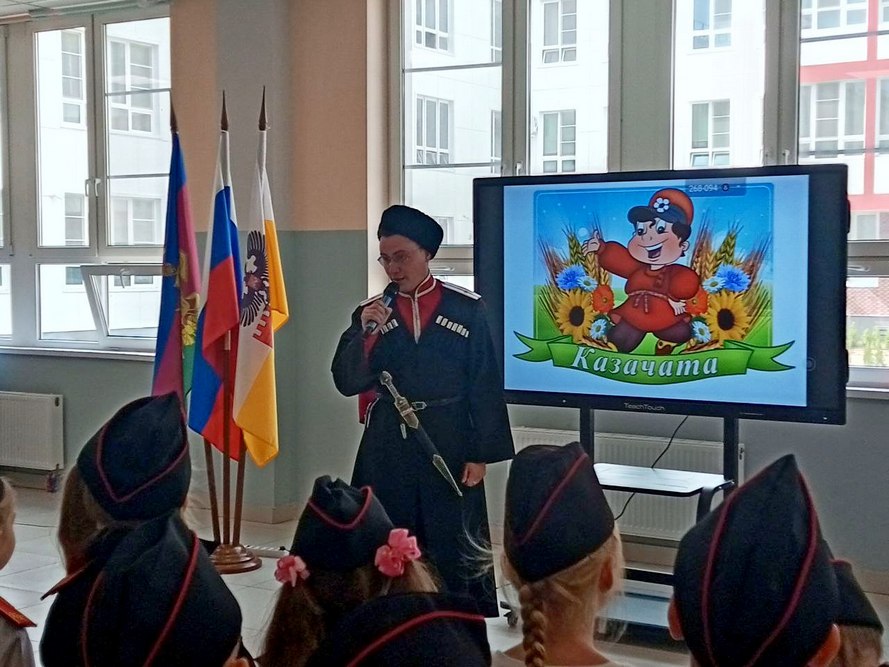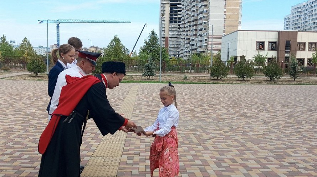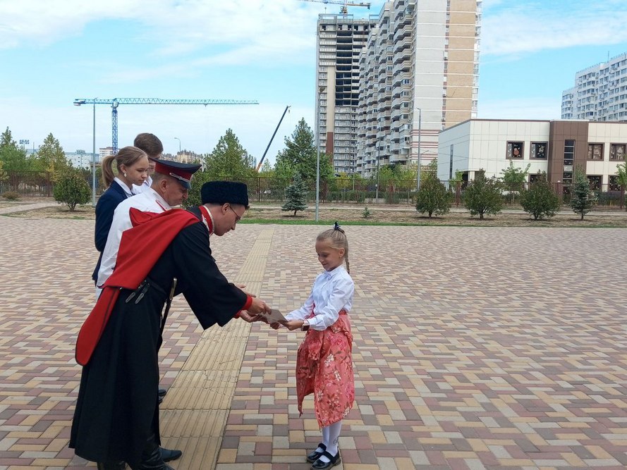 Сейчас, в честь празднования 231-й годовщины основания города Краснодара в общеобразовательных учреждениях, где есть классы и группы казачьей направленности, проходят торжественные церемонии посвящения в казачата учащихся 1-х классов казачьей направленности.