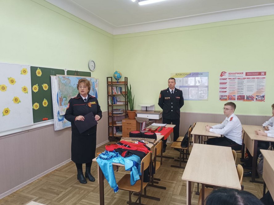 Занятие стартовало с вводной лекции, раскрывшей исторические корни казачества на Кубани. Отдельно обсудили традиционные занятия казаков – земледелие, скотоводство и военную службу. Учащиеся узнали любопытные детали о том, как казакам удавалось успешно сочетать сельскохозяйственные работы с охраной государственных границ. Лекция сопровождалась показом бытовых предметов и оружия.