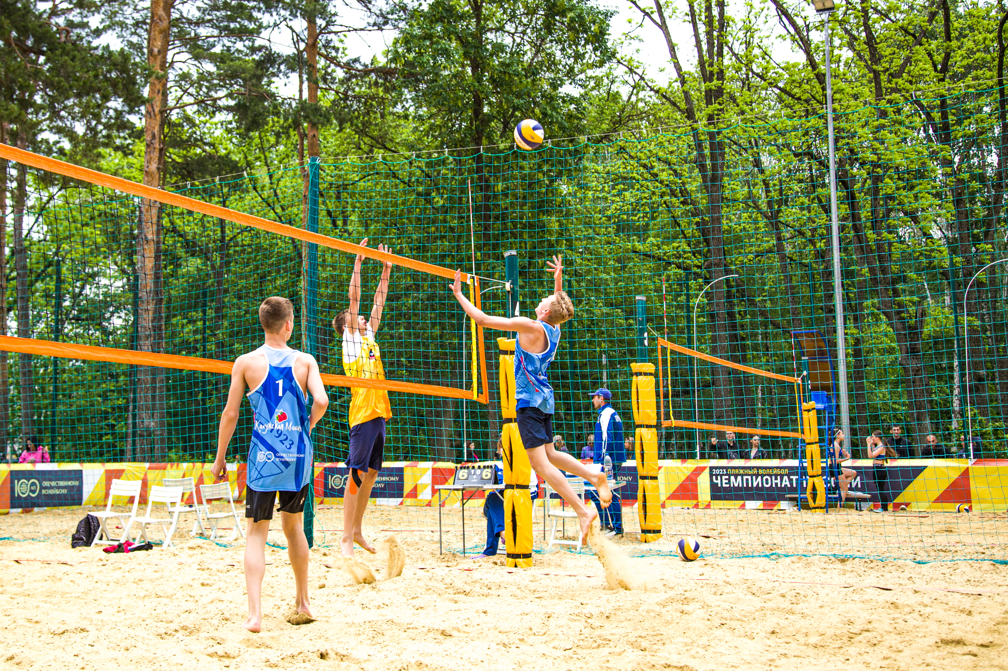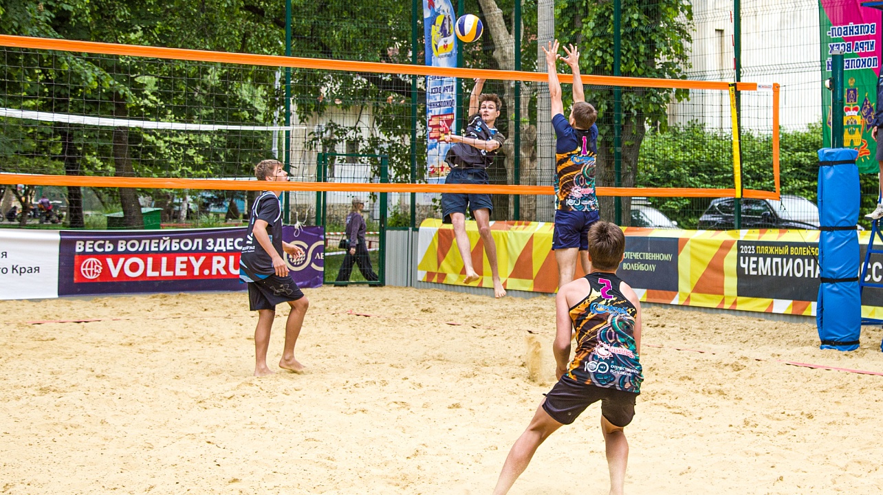 В парке «Солнечный остров» завершился первый из шести этапов чемпионата по пляжному волейболу. На кортах собрались 77 команд, а это 154 участника от 10 до 16 лет.