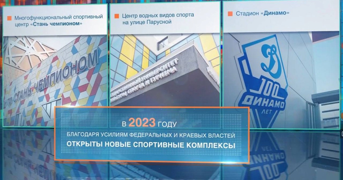 Он рассказал о строительстве физкультурно-оздоровительных комплексов и обустройстве многофункциональных спортивных площадок, а также масштабной реконструкции стадиона «Динамо».