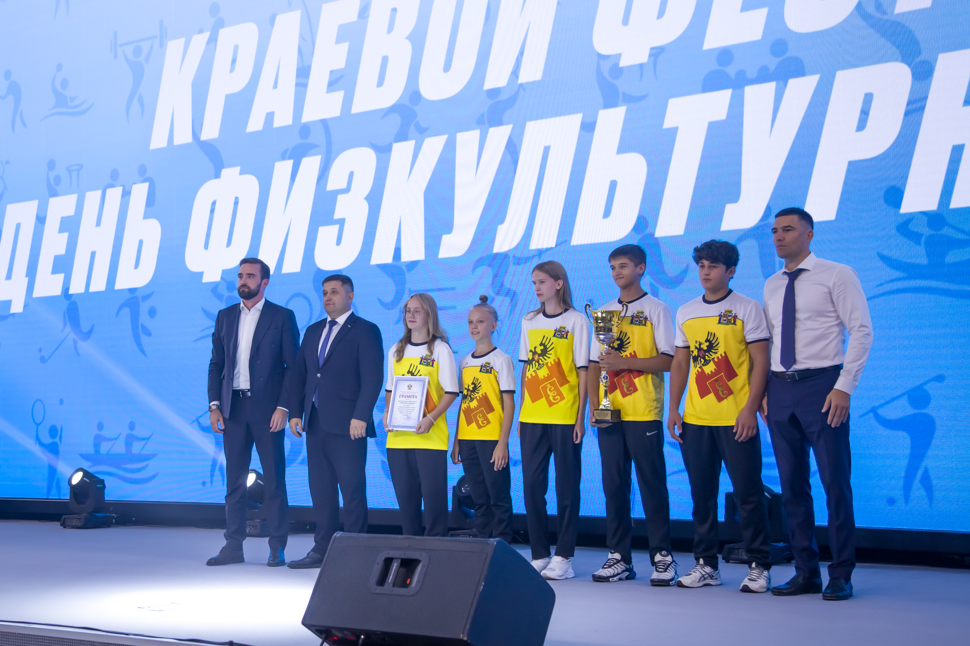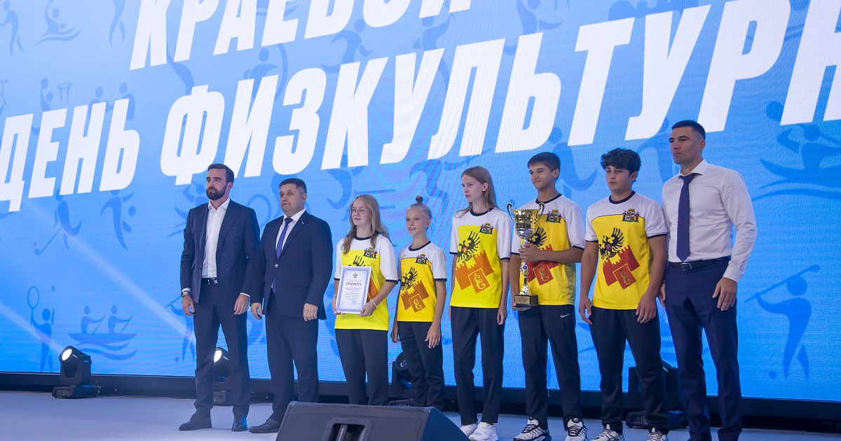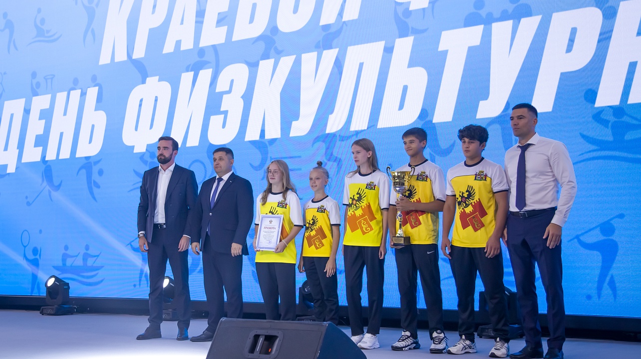 На торжественной церемонии наградили сборную команду Краснодара, победившую в XII летней спартакиаде учащихся Кубани. Кубок вручили заместителю главы краевого центра Денису Ярченко.