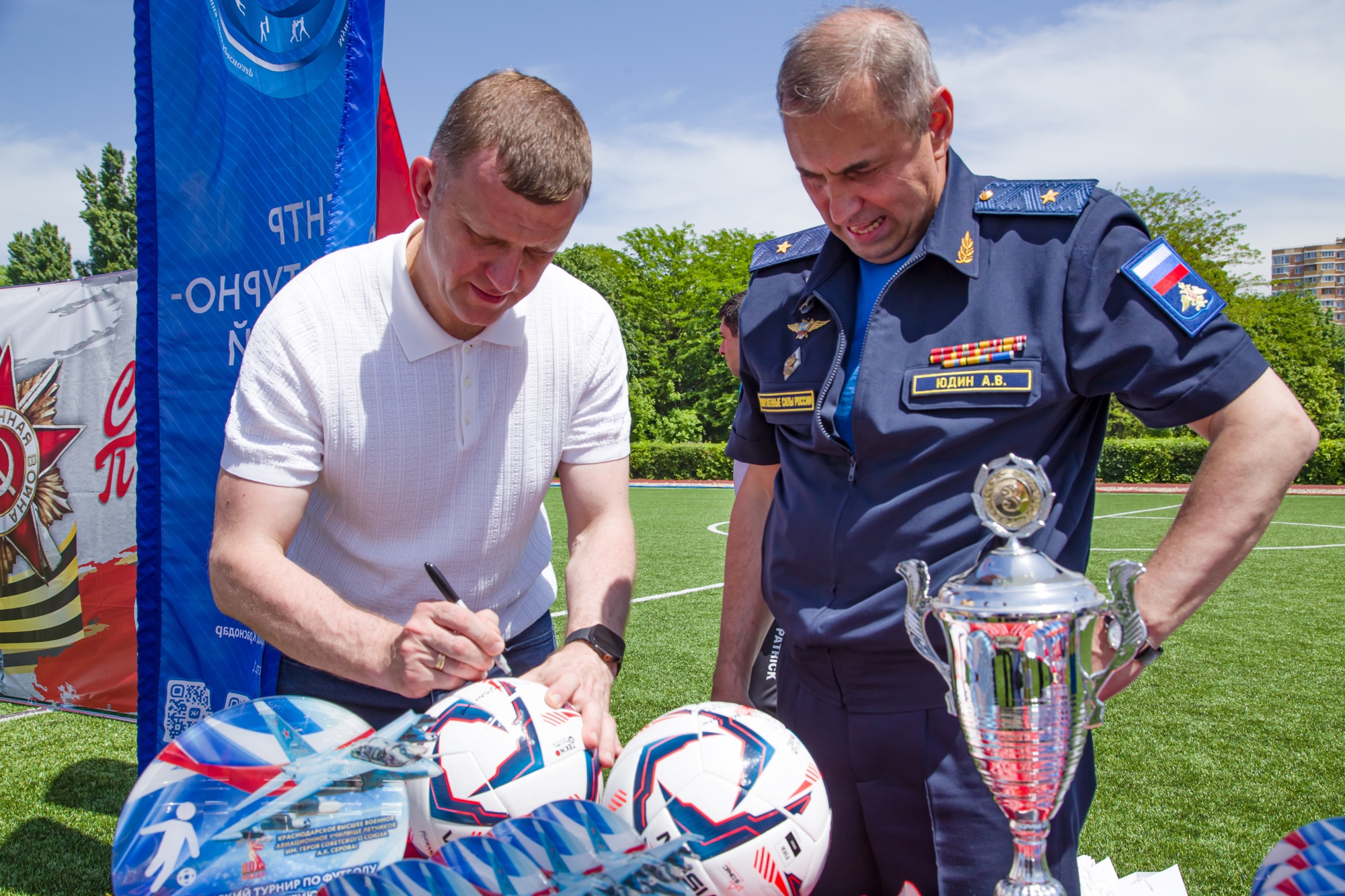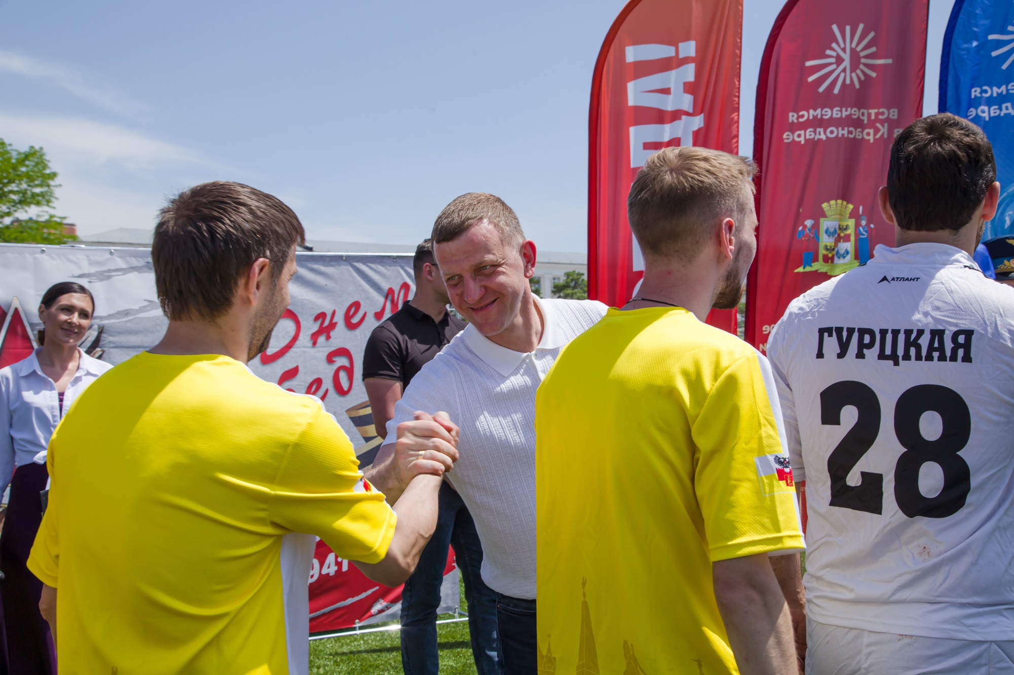 Символичным ударом по мячу мэр Краснодара дал старт турниру. Участие приняли хозяева поля, а также команды Краснодарского высшего военного училища имени генерала армии Сергея Штеменко и городской администрации, куда вошли двое сотрудников департамента по физической культуре и спорту - Владислав Наймушин и Алимбек Максидов.
